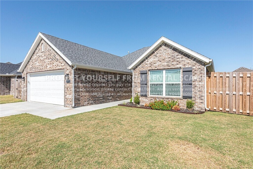 AVAILABLE NOW! Check out this beautiful 4 bedroom 2 bathroom home located just minutes away from trails,eateries,schools,parks,and a short drive from the University of Arkansas! Head inside to the open concept living room & kitchen with a gas log fire place,wood look tile flooring,island with breakfast bar,granite countertops,plenty of cabinet space,and pantry! Check out the primary bedroom with tray ceiling,walk in closet,and private on suite with double sink vanity,gorgeous bathtub with tile back splash,and walk in shower! Don't miss the gorgeous backyard with a covered back patio & ceiling fan,and privacy wood fence! NO CATS. Dogs negotiable. **Tenant is responsible for all utilities and lawn care/maintenance. MLS ID 1330101