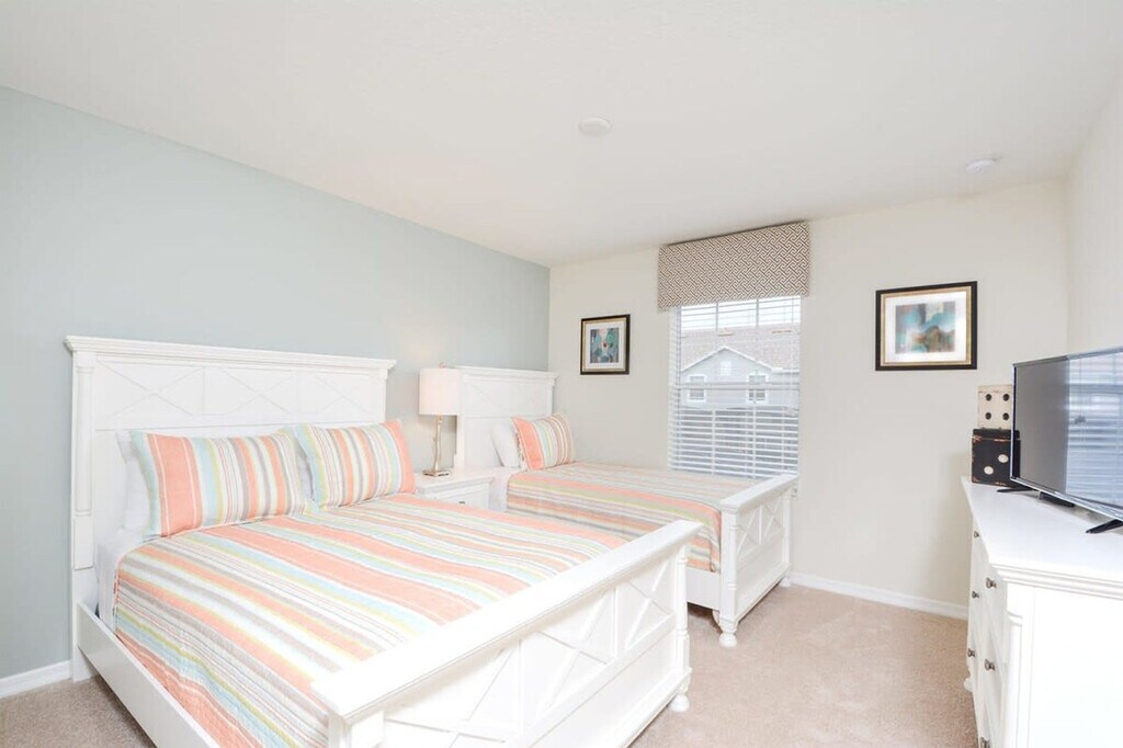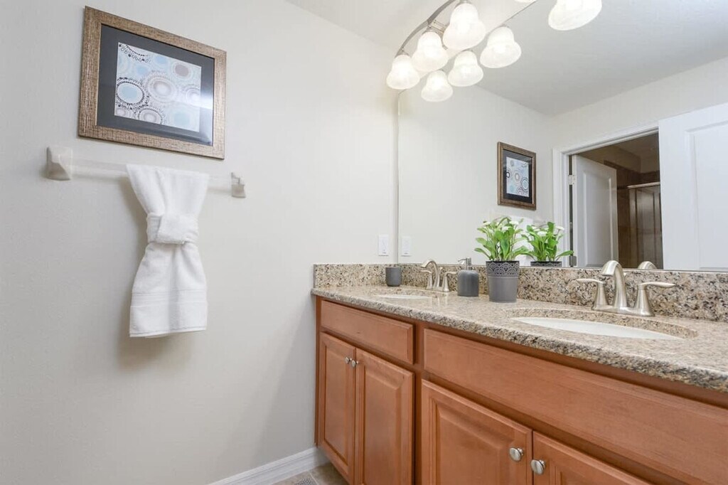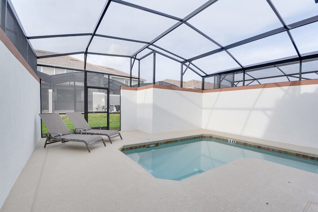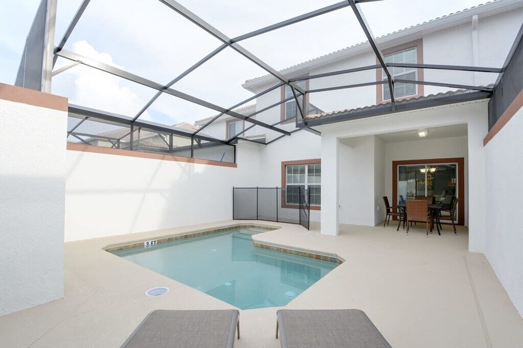 Experience the pinnacle of comfort in this 4-bedroom townhome within the enchanting Storey Lake resort. Packed with family-oriented amenities like a pool, fitness center, tiki bar, and mini-golf, this destination is a paradise of leisure. The abode effortlessly merges the living, dining, and kitchen spaces, tailored for up to 9 guests, ensuring a memorable escape. Enjoy the added relaxation and enjoyment of a private pool during your stay. Step into your family's sanctuary, a meticulously designed 4-bedroom townhome crafted for unparalleled comfort. The spacious living room seamlessly merges with the dining area and a fully equipped kitchen, forming a central haven for relaxation and culinary delights. Venture outside to your private, heatable pool on the patio, an oasis of relaxation. The first floor welcomes you with a king bedroom, complete with its own bathroom for convenience and privacy. Moving to the second floor, you'll find the remaining 3 bedrooms. The master king bed suite promises a tranquil retreat, while the other 2 bedrooms offer flexible sleeping arrangements, one with a double and a single bed, and the other with two single beds, sharing a bathroom. Ensuring your ease, a laundry room equipped with a washer and dryer stands ready. Stay seamlessly connected with complimentary Wi-Fi and enjoy the convenience of complimentary parking. Your stay starts smoothly with a considerate welcome kit, encompassing essential bathroom and kitchen amenities. Heating the pool is a paid service and there is also a fee charged to use the barbecue grill. Storey Lake Resort has the perfect location just 10 minutes from all major attractions and theme parks in Orlando, including Walt Disney World, Universal Resort, and Sea World. You will find fantastic resort amenities for the whole family to enjoy with a tiki bar, a resort-style pool with slides and lazy river, sports court, mini-golf, kayak, and fitness center. There are 2 clubs inside the property, one of them with a themed pirate pool that kids will love, just walking distance from the house. Located just off Osceola Parkway, the resort has easy access to restaurants, shopping, and supermarkets, all within a 5-minute drive. Quiet hours are between 22:00 and 8:00. Replenishment of bathroom and kitchen amenities is the guest's responsibility. [SI]