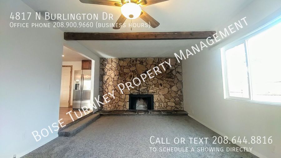 This beautifully updated West Boise home has it all! Single level open floorplan boasts very large rooms- each bedroom is generously sized. The kitchen has been appointed with granite countertops, lovely all new cabinetry, pendant lighting, and stainless steel appliances. The large island makes for great entertaining space, or enjoy the sunken living room with wood burning stone fireplace, or the additional dining space. Exterior has a cool retro feel, south facing backyard with covered patio, and gate for quick walk to access the Hyatt Hidden Lakes Reserve. Plus plenty of room for all your Idaho toys! Email or text our agents' local numbers or email for fastest reply! Note: We do not advertise on Craigslist, and all agents have an email specifically tied to our company. All showings are self-guided- video tour also offered if preferred! Nitty-gritty details: Home available now, lease term flexible with yearly renewal options available Washer/dryer hook-ups. Tenant pays all utilities (electric, gas and water, sewer and trash) Non-smoking unit ONLY Security deposit of $2400 due 48 hours after application approval ($1750 refundable, $650 held for admin fee, cleaning and rekeying). Central AC and heating Yard care will be tenant responsibility All adult tenants on lease must be screened and pass requirements, roommates must each qualify independently Cats and dogs considered, with proper screening and additional one-time pet fee assessed Tenant will be required to secure renter's insurance policy We cannot "hold" property- must be prepared to initiate a lease and begin paying rent within 10 days of application approval. Verify the ad on our company website and request an in-person showing with a qualified agent today! Fully Fenced Backyard Granite Countertops None Two Car Garage
