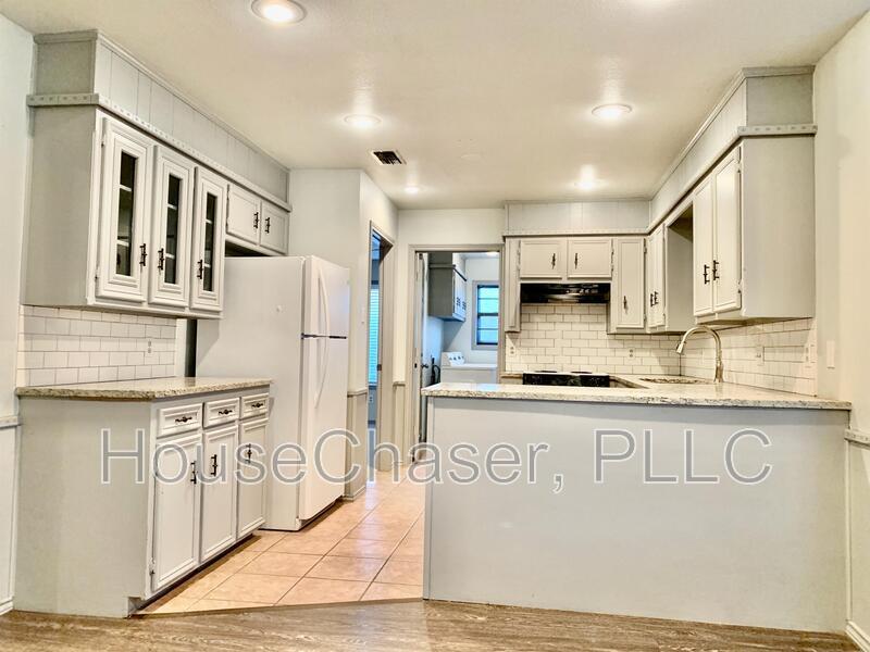 Preleasing for fall. Available June 5th. Beautifully updated home less than 2 miles from Texas Tech and Hospitals. Only 1 block from Rush elementary and Higinbotham Park. You will love the open concept with the high vaulted living room ceiling and massive brick fireplace. Granite counters and modern designer grey color palette throughout. The large backyard features a covered patio and fully fenced. Isolated master bedroom suite with dual closets, dual cabinets and double vanity. Two car garage with electric openers. Pet friendly! Washer/Dryer and fridge all included!
