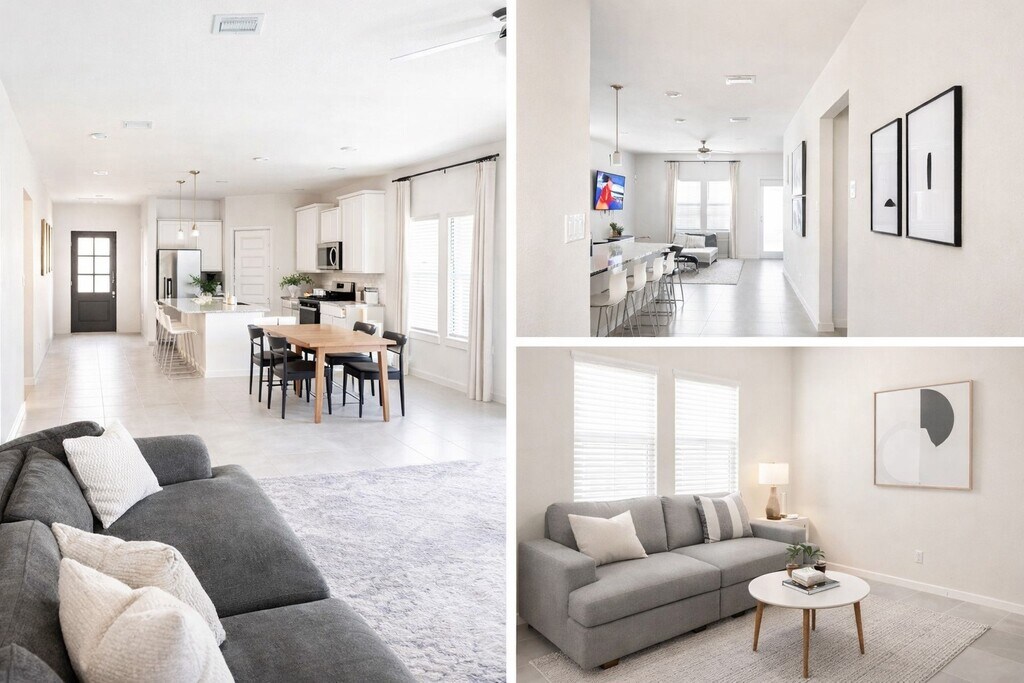 Welcome to this stunning 2023 two-story home,perfectly situated on a spacious lot in a quiet,established neighborhood. This elegant residence offers 4 bedrooms,3.5 bathrooms,and 2,495 sq ft of open-concept living designed for comfort and style. Step inside to an impressive living area,sleek floating shelves,and large windows that fill the home with natural light. The gorgeous kitchen boasts a grand island,granite countertops,and custom cabinetry creating the perfect space for entertaining or family gatherings. The primary suite is a private retreat and spa-like bathroom featuring a standalone soaking tub,walk-in shower,and a custom-built closet with drawers,shelving,and abundant storage. Additional highlights include a walk-in pantry,formal dining area,and a laundry room. Outside features large backyard with covered patio. MLS# 88241672