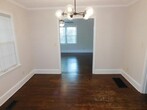 No carpets! The front entry of this charming home leads to a living room with ceiling fan. There is a separate dining room,two nice size bedrooms with ceiling fans,full hall bath with tiled tub/shower combination,tile flooring,single vanity and medicine cabinet. There is a laundry closet with a stackable washer & dryer. The kitchen has tile floors,white cabinets,Granite counters,all appliances (refrigerator,microwave,dishwasher,electric stove) and pantry/closet. There is access to the side wood deck,large level fenced yard with storage shed. Parking on driveway. Landscaping is included in the rent. Close to Historic Marietta & Marietta Square and 5 minutes to Kennestone Hospital. No aggressive dog breeds.