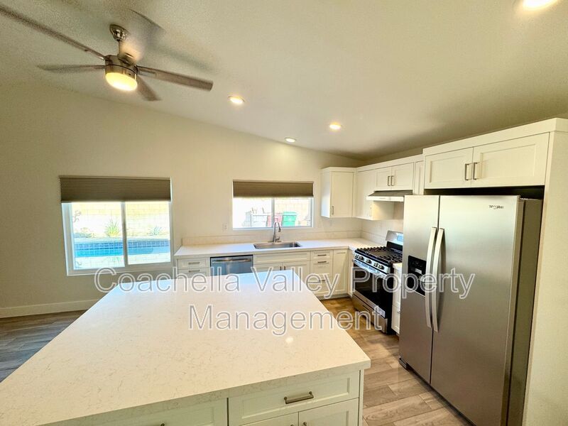 Welcome to this Stunning, Fully Renovated from Top to Bottom, 4 Bedroom Pool Home @ the gated Las Brisas Community in beautiful Indio, CA! This stunning home boasts four spacious bedrooms and two full bathrooms, perfect for comfortable living. The home is nestled within a secure gated community, offering an added layer of peace and security. The thoughtfully updated kitchen is a chef's dream with a large island, complete with beautiful Granite Countertops, a separate walk-in pantry, ample cabinetry with slow-close features, and new, modern appliances including a dishwasher, refrigerator, and stove/oven. The home also features a convenient laundry room adjacent to the kitchen and fourth bedroom, equipped with a brand-new washer and dryer. The master suite is a true retreat with a walk-in closet and a luxurious walk-in shower, double vanities, and access to the backyard retreat. When stepping outside, you will find one of the larger lots in the entire HOA, with a pristinely maintained grass lawn that wraps around to the large side of the home. Not to mention this entertainers dream comes complete with a sparkling private pool & spa, perfect for enjoying the beautiful California weather. The home also includes a 2-car garage for easy parking and storage. This home is a perfect blend of comfort and luxury, don't miss out on this gem in Indio! Please call Coachella Valley Property Management at 1-833-FOR-RENT (367-7368) for more information or to schedule an appointment for viewing. All Applicants Must Have the Following: Minimum Monthly Income of 3 Times the Monthly Rent, No Prior Evictions, Good Rental History, No Bankruptcy Filings, No Previous Felonies. *Please note that additional fees may apply, including but not limited to an application fee, setup fee, and administration fee. Additionally, some units may incur extra rental costs, which could encompass pet rent, appliance rent, and credit remediation rent charges.* ** If you see this home advertised online for less than the rental amount quoted here, the ad is a SCAM. We are the only authorized agent for this property. Please email us a link to any bogus or fraudulent ads so we can report it to the appropriate authorities. Please do NOT send money to anyone who offers keys in exchange for a deposit check - especially if they are out of state. When in doubt, please feel free to contact us. ** Amenities: dishwasher, gated community, refrigerator, washer/dryer, stove/oven, private pool, 2-car garage, walk-in shower, walk-in closet, laundry room, large backyard, large kitchen island, walk-in pantry