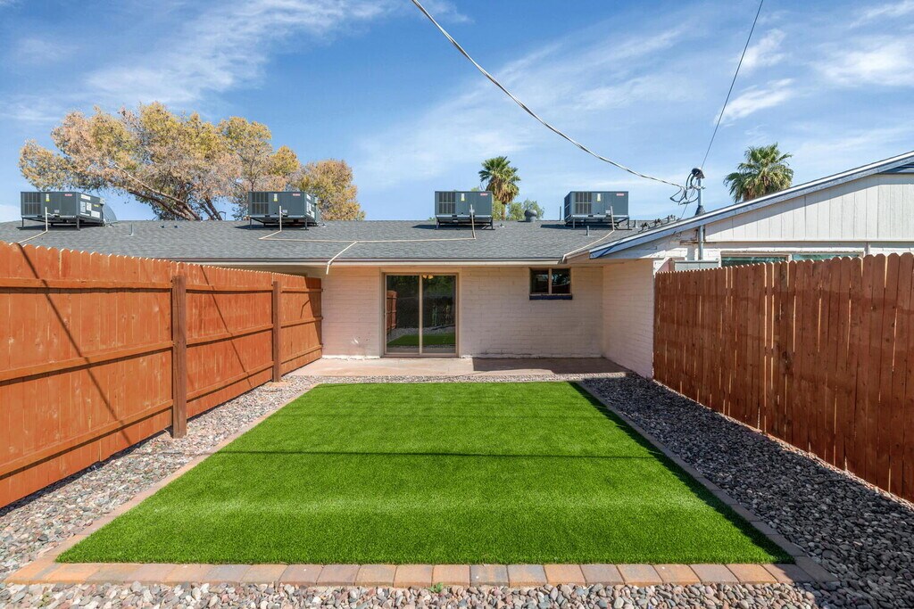 Welcome to your newly updated 1 bedroom, 1 bathroom home offering 656 sq/ft of modern comfort and style. This freshly remodeled unit features brand-new flooring, fresh paint, window blinds, and a full suite of new appliances including a refrigerator, stove, sink, and water heater. The bright and functional layout includes a cozy living area and a private, fenced backyard with grass, perfect for outdoor relaxation or entertaining. Enjoy added convenience with covered parking, a private storage unit, and access to a large shared grassy area ideal for barbecues and community gatherings. The entire property has been upgraded with a new roof, new stucco, exterior paint, and four new air conditioning units, all with transferable warranties for peace of mind and energy efficiency. As a special move-in incentive, the owner is offering a $250 gift card upon successful signing of a one-year lease. Centrally located near downtown Phoenix, Arcadia, and major freeways, you’ll be close to shopping, dining, and everything the city has to offer Credit background check $45 Application fee $195 WST $50.00 Monthly Fee $19.50