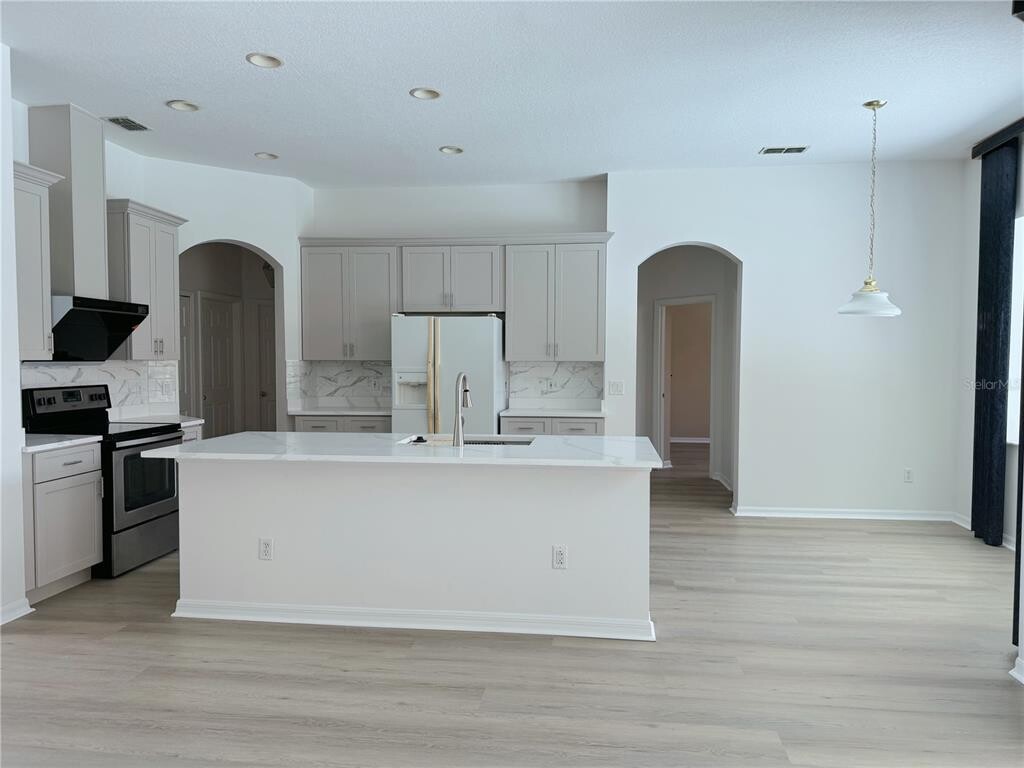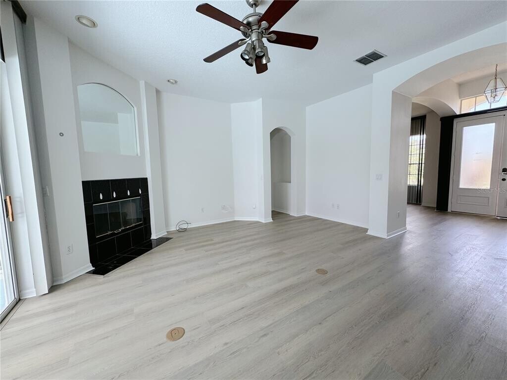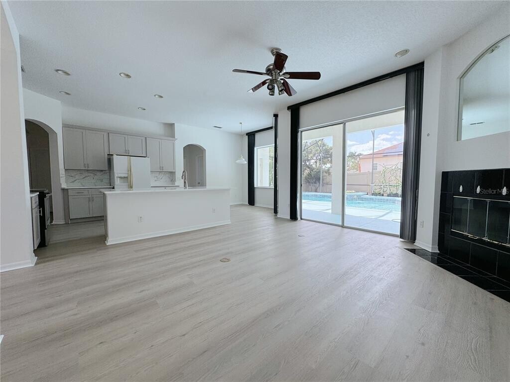 This beautifully updated 4-bedroom,3-bath home is in the desirable Hunter's Creek community. This home is filled with natural light and features fresh paint,brand new vinyl flooring,and a fully renovated gourmet kitchen with stylish new cabinets and countertops. The open layout,featuring a formal dining area and a room which could be a home office/play area,and a spacious living room,is perfect for entertaining or relaxing. The two bedrooms are at the front of the home,with an additional guest bedroom,and the bath -featuring a new vanity and direct access to the pool- toward the back. Perfect for the guest. The luxurious primary suite with dual walk-in closets,double brand new vanities,and private access to the sparkling pool with a heater and spa. This home also features a Tesla charging station and 40 solar panels to reduce electricity costs,as well as Ring security cameras for added safety and convenience. Convenient location near the school,shop,restaurants,Airport,Seaworld,and Highway 417,528. The rent includes the lawn care and the pool maintenance. MLS# O6346139