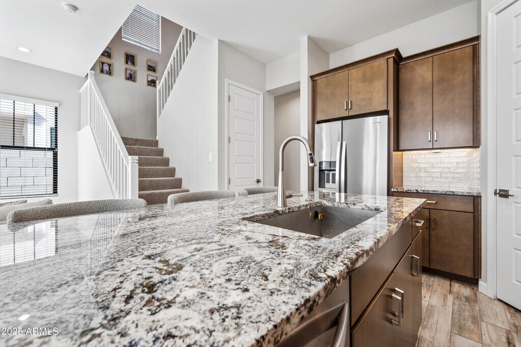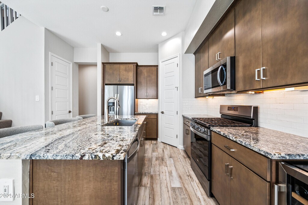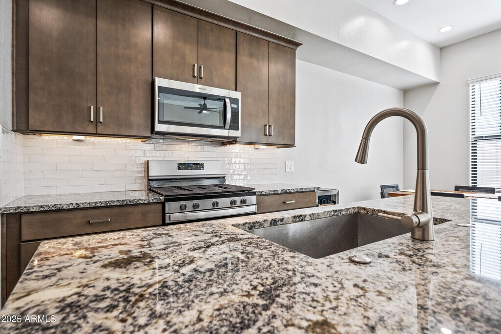 Available Jan. 1 2026! This townhome boasts a rare,upgraded floor plan featuring 4 bedrooms (one on the ground floor),3 full bathrooms AND versatile loft space * Smart Home Technology * Neutral paint palette throughout * Wood-like tile flooring in all high traffic areas * Open concept kitchen features designer cabinets,granite countertops,walk-in pantry,large center island,breakfast bar and stainless steel appliances (including gas range) *Spacious primary bedroom with luxurious en-suite featuring beautiful walk-in tiled shower and great closet * Low maintenance backyard with turf and pavers * 2 car garage * Arabella is a gated community with a heated swimming pool and spa,playground and walking/bike trails. Close to great schools,hospitals,shopping and freeways.