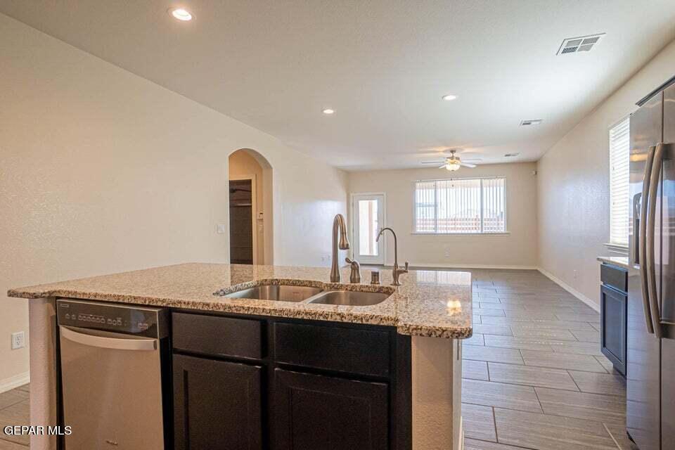 Located in the Tres Suenos Subdivision,this Single Story home opens to a gorgeous park as you exit the front yard. Xeriscape landscaping in front and back keeps the yard low maintenance. This home is a great home to retreat to and enjoy the mountain views. It has 3 bedrooms and an additional room in the front you can use as a 4th bedroom or family room. The Primary Bedroom is separate with a beautiful walk-in tiled shower and double vanity. Refrigerated air,a two-car garage,and a water softener are just some of the amenities of this must-see home. Not voucher eligible -Tenant Occupied - do not disturb Tenant- showings available after the 21st of January