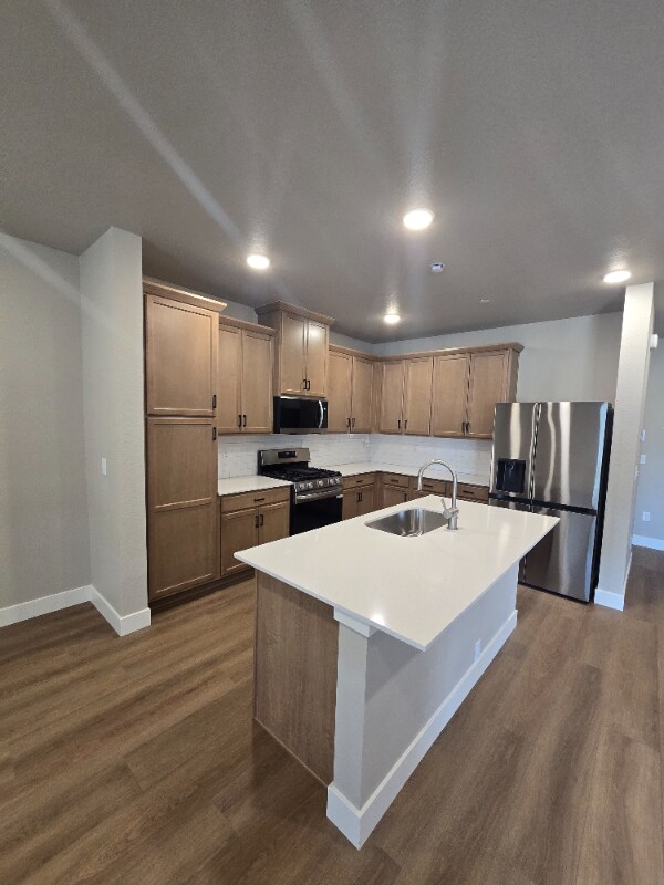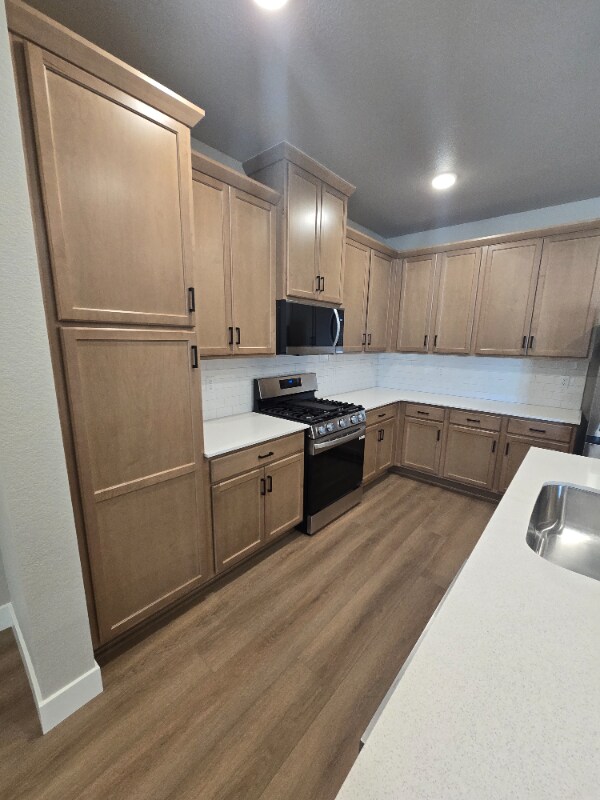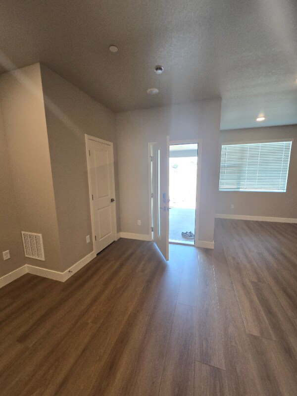 Property Id: 2076462 Townhome w/ open-concept main floor. Fenced courtyard. This middle-unit townhome offers 3 bedrooms, 2 bathrooms, and a convenient powder bath on the main level. The kitchen is equipped with LG stainless steel appliances, including a gas range, microwave, dishwasher, and refrigerator, paired with Biscotti maple cabinetry and quartz countertops. Durable vinyl plank flooring runs through the entry, kitchen, dining, bathrooms, laundry, and living room. All bedrooms are located on the upper level, alongside a laundry room complete with a washer and dryer. Additional features include central A/C, and 2 in white faux window blinds. Includes E.V. car charger in Garage.