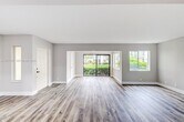 BEAUTIFUL & FULLY RENOVATED 1ST-FLOOR CONDO! This updated 2-bed, 2-bath condo offers modern elegance and is privately nestled among lush greenery. Enjoy new vinyl plank flooring and smooth, popcorn-free ceilings throughout. Freshly painted with new baseboards, closet doors, fans, and fixtures, it features a renovated kitchen with wood shaker cabinets, Quartz countertops, LED recessed lighting, and stainless steel Frigidaire appliances. A separate laundry closet includes a washer and dryer. Sunlit dining and living areas boast corner windows and sliding glass doors. The spacious master suite offers a walk-in closet, while the renovated bath includes a custom vanity, Quartz counters, decorative tile flooring, and a frameless glass shower.