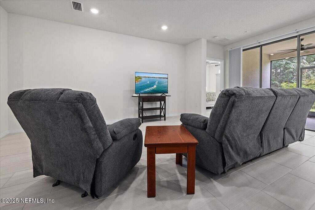 This well-maintained ground-floor carriage home offers an expansive preserve view for privacy from the screened lanai. The open floor plan features tile flooring throughout,a spacious kitchen that flows seamlessly into the living area,and a split-bedroom design that ensures comfort for guests. With 2 bedrooms,2 full baths,and a versatile flex roomideal for a home office,craft room,or studythis home adapts to your lifestyle. Beautiful paver driveway,1-car garage & additional guest parking. Recent updates include a brand-new water softener,reverse osmosis water system & a full-house inspection already completed for peace of mind. Located in Del Webb Ponte Vedra,the area's premier 55+ community,you'll enjoy world-class amenities at the Anastasia Club,including indoor and outdoor resort-style pools,hot tubs,a state-of-the-art fitness center,tennis and pickleball courts,& over 100 clubs. Enjoy daily walks or a quick golf cart ride to town center. MLS# 2115241