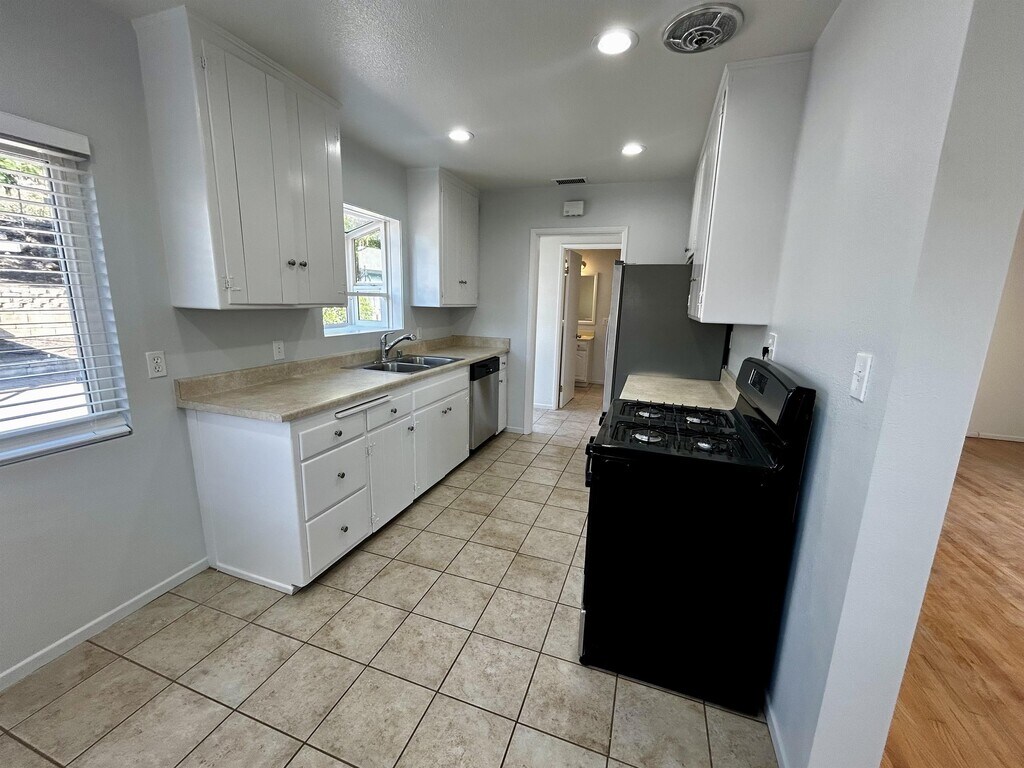 Live in this charming Allied Gardens home featuring hardwood flooring, enjoy sunny afternoons in the living room with a large picture window, efficient galley style kitchen with breakfast nook, brand new gas range and dishwasher. Spend your week-ends relaxing in the private backyard with covered area, mature trees and raised garden bed. This sparkling clean home is ready for you to move right in. Easy access to the 8 Freeway. 2 car attached garage, refrigerator included.