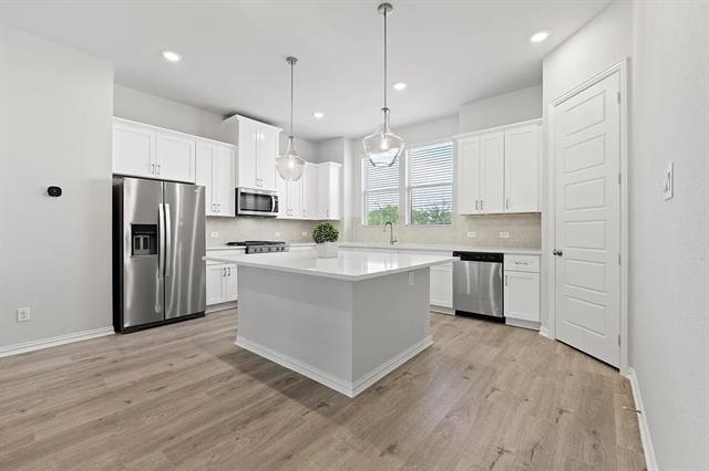This brand new three story single family home is located in a gated community, which includes a pool. It has three spacious bedrooms, with two full bathrooms, two half bathrooms, and an office that features an elegant accent wall. Relax beside the cozy electric fireplace in the open-concept living space leading into a gorgeous kitchen with gleaming white cabinets, a gas stove, and a massive pantry. Enjoy the convenience of city life which includes restaurants, shopping centers, entertainment, and more only seven minutes away while residing in a quiet neighborhood.