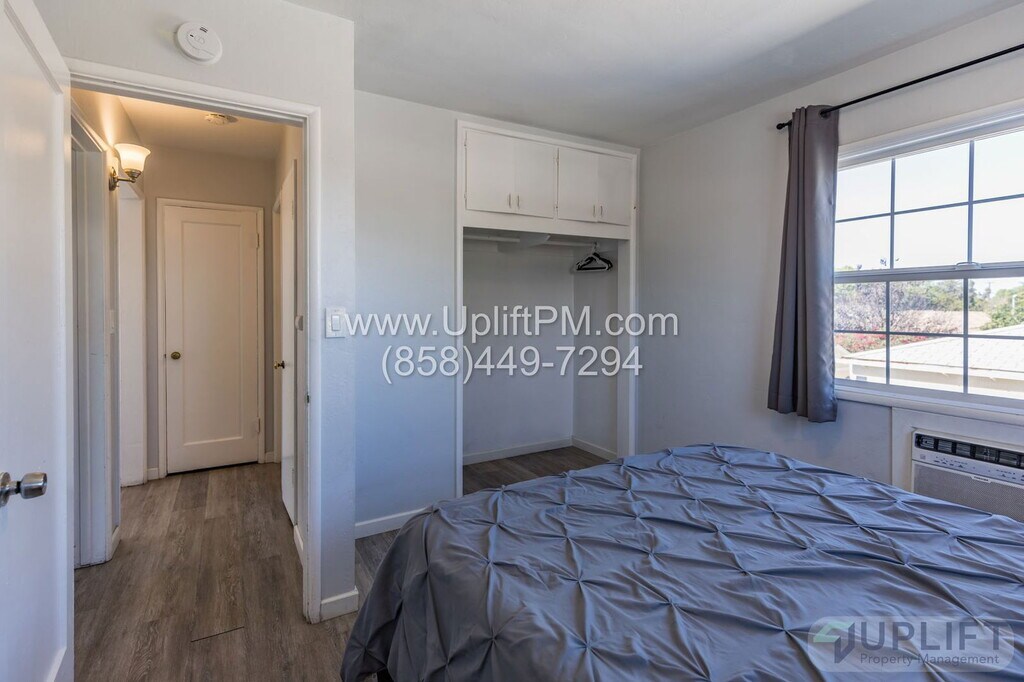 ***PLEASE READ ENTIRE DESCRIPTION BEFORE CALLING*** Welcome to your new home in the heart of San Diego, CA! This top floor, 2-bedroom, 1-bathroom apartment is a gem waiting to be discovered. The apartment boasts a range of modern amenities including stainless steel appliances, ceiling fans, wall AC, and a wall furnace to ensure your comfort all year round. The new flooring, fresh paint, and granite countertops add a touch of elegance to the space. The tile floors are not only stylish but also easy to maintain. The apartment is located on a Fox Canyon cul-de-sac, providing a sense of community and security. For those who enjoy outdoor spaces, there is a shared fenced-in outdoor area perfect for socializing or simply enjoying the California sunshine. Pet owners will be pleased to know that a pet is allowed upon approval. This apartment is a perfect blend of comfort, style, and convenience. Don't miss out on this opportunity to make it your new home! UNIT INFORMATION: Utilities: None, Tenant responsible for all utilities. Water/Sewer will be billed to tenant with RUBS. Parking/Storage: 1 Assigned driveway spot. "3" AC/Heat: Wall ACs, Wall Furnace Laundry: Shared on-site laundry Pet Policy: Pets allowed upon approval. $500 additional security deposit, $75 additional increased rent per month. 1 pet limit. Please visit our website to view all the units, information, and the links referenced below. SHOWINGS: Add your name to the waitlist to be notified of a date and time available for a self-guided walkthrough TO APPLY: Visit /available-properties to find the unit you are looking for and click "Apply Now" or “Submit an Application”. All our applications are done online through our company website. Be sure to pay the $40 application fee when applying. Each person planning to live here that is over the age of 18 MUST submit an application for approval. REQUIREMENTS TO RENT: 1. Minimum household gross income of 2.8x the monthly rent. 2. A good credit score and clean history (625 minimum). 3. Proof of income to be able to rent. Income can include assistance such as food stamps, child support - call for clarification if necessary. 4. A Social Security Number (SSN) or Individual Taxpayer Identification Number (ITIN). 5. Valid, current, government issued Photo ID. All Uplift Property Management residents are enrolled in the Resident Benefits Package (RBP) for $45.95/month which includes liability insurance, HVAC air filter delivery (for applicable properties), our best-in-class resident rewards program and much more! More details upon application. $40 Application fee is NOT refundable. Units are rented to the best qualified applicant when assessed using the requirements to rent. Conditional approval may be possible for people that do not meet all requirements. Applicants that do not meet all requirements will be subordinate to fully qualified applicants. In instances in which there is a government rent subsidy, applicants have the option to provide lawful, verifiable alternative evidence of the applicant's reasonable ability to pay the portion of the rent as an alternative to credit history. Please contact our office at for more information. Tenant FAQs: Uplift Property Management CA DRE License #01902511 AMENITIES: * Stainless Steel Appliances * Cul-de-sac * Ceiling Fans * Wall AC * New Flooring * New Paint * Tile Floors * Granite Countertops * Pets allowed upon approval * Wall Furnace * Shared Fenced In Outdoor Area * Top Floor By submitting your information on this page you consent to being contacted by the Property Manager and RentEngine via SMS, phone, or email.