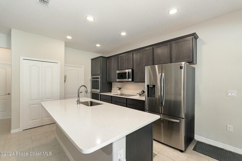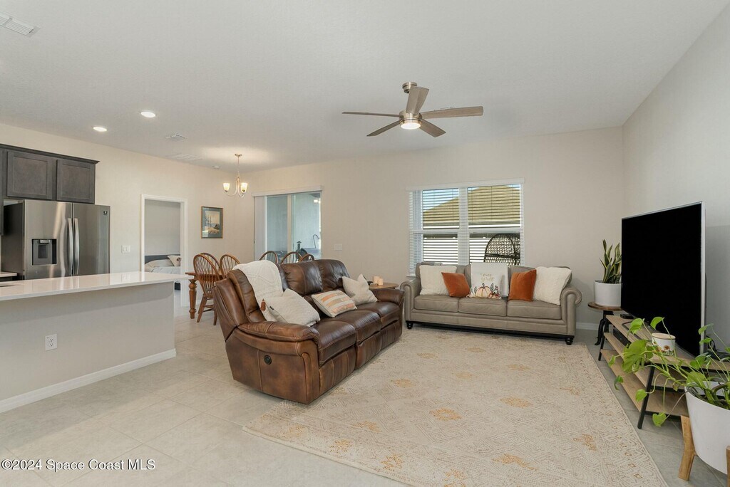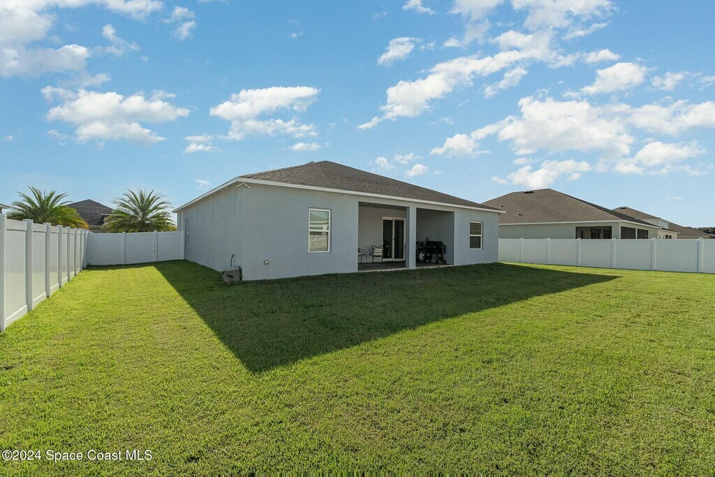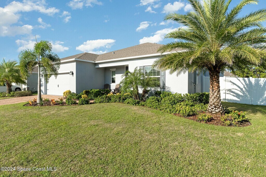 This gorgeous home is in the picturesque community of Egrets Landing,just 8 miles south of the renowned Kennedy Space Center. Situated in a tranquil neighborhood,this residence offers the perfect blend of modern comforts and coastal living. As you step through the front door,you'll be greeted by an inviting and sunlit living room,adorned with large windows that frame the spacious vinyl-fenced backyard. The open-concept design with tile floors throughout NO CARPET! Seamlessly connects the living area to the kitchen,which features quartz countertops,stainless steel appliances,and a convenient breakfast bar. MLS # 1074872