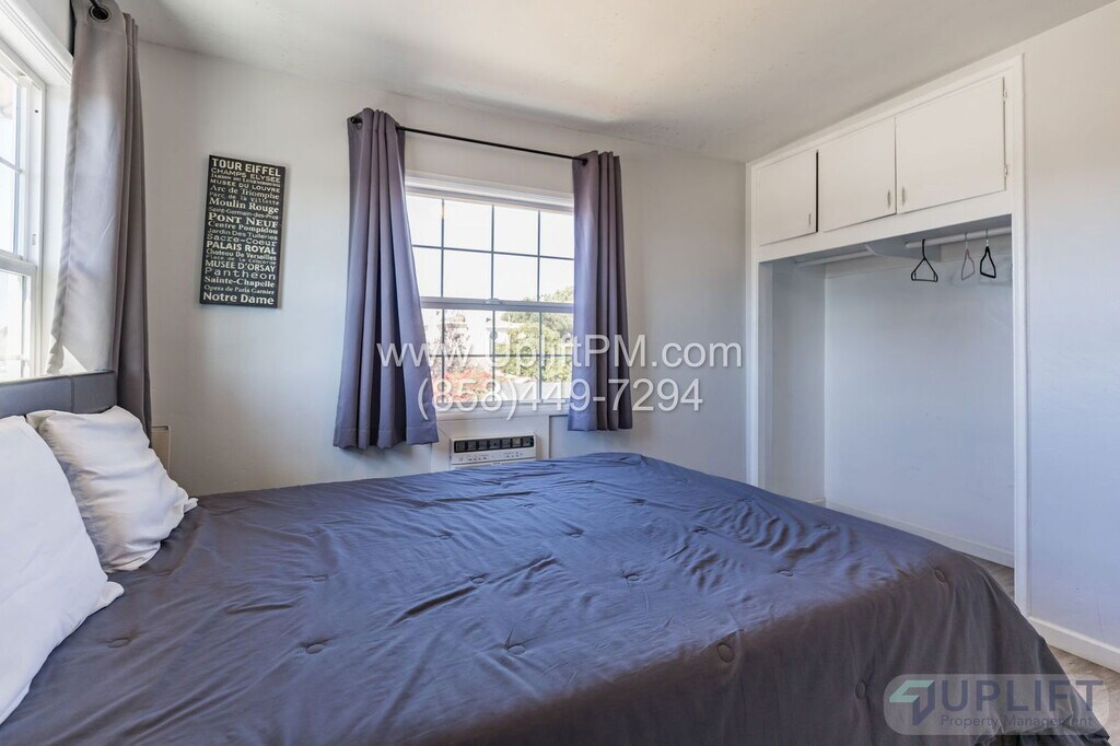 ***PLEASE READ ENTIRE DESCRIPTION BEFORE CALLING*** Welcome to your new home in the heart of San Diego, CA! This top floor, 2-bedroom, 1-bathroom apartment is a gem waiting to be discovered. The apartment boasts a range of modern amenities including stainless steel appliances, ceiling fans, wall AC, and a wall furnace to ensure your comfort all year round. The new flooring, fresh paint, and granite countertops add a touch of elegance to the space. The tile floors are not only stylish but also easy to maintain. The apartment is located on a Fox Canyon cul-de-sac, providing a sense of community and security. For those who enjoy outdoor spaces, there is a shared fenced-in outdoor area perfect for socializing or simply enjoying the California sunshine. Pet owners will be pleased to know that a pet is allowed upon approval. This apartment is a perfect blend of comfort, style, and convenience. Don't miss out on this opportunity to make it your new home! UNIT INFORMATION: Utilities: None, Tenant responsible for all utilities. Water/Sewer will be billed to tenant with RUBS. Parking/Storage: 1 Assigned driveway spot. "3" AC/Heat: Wall ACs, Wall Furnace Laundry: Shared on-site laundry Pet Policy: Pets allowed upon approval. $500 additional security deposit, $75 additional increased rent per month. 1 pet limit. Please visit our website to view all the units, information, and the links referenced below. SHOWINGS: Add your name to the waitlist to be notified of a date and time available for a self-guided walkthrough TO APPLY: Visit /available-properties to find the unit you are looking for and click "Apply Now" or “Submit an Application”. All our applications are done online through our company website. Be sure to pay the $40 application fee when applying. Each person planning to live here that is over the age of 18 MUST submit an application for approval. REQUIREMENTS TO RENT: 1. Minimum household gross income of 2.8x the monthly rent. 2. A good credit score and clean history (625 minimum). 3. Proof of income to be able to rent. Income can include assistance such as food stamps, child support - call for clarification if necessary. 4. A Social Security Number (SSN) or Individual Taxpayer Identification Number (ITIN). 5. Valid, current, government issued Photo ID. All Uplift Property Management residents are enrolled in the Resident Benefits Package (RBP) for $45.95/month which includes liability insurance, HVAC air filter delivery (for applicable properties), our best-in-class resident rewards program and much more! More details upon application. $40 Application fee is NOT refundable. Units are rented to the best qualified applicant when assessed using the requirements to rent. Conditional approval may be possible for people that do not meet all requirements. Applicants that do not meet all requirements will be subordinate to fully qualified applicants. In instances in which there is a government rent subsidy, applicants have the option to provide lawful, verifiable alternative evidence of the applicant's reasonable ability to pay the portion of the rent as an alternative to credit history. Please contact our office at for more information. Tenant FAQs: Uplift Property Management CA DRE License #01902511 AMENITIES: * Stainless Steel Appliances * Cul-de-sac * Ceiling Fans * Wall AC * New Flooring * New Paint * Tile Floors * Granite Countertops * Pets allowed upon approval * Wall Furnace * Shared Fenced In Outdoor Area By submitting your information on this page you consent to being contacted by the Property Manager and RentEngine via SMS, phone, or email.