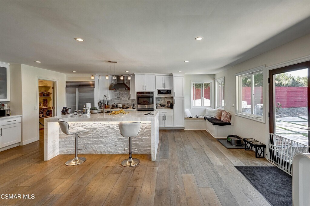 Location, location, location. Offered for Lease $11,999.00 a month. 4833 Dunman, the home is located south of Boulevards, within the award-winning El-Camino & Calabasas School District. Home features, Quiet Street, no sound of the Blvd. Almost no electricity bill because of solar newly installed, Newer AC installed. The 2-car garage is equipped with Newer EV (220 V) electric car charger. Security systems and cameras are installed around the entire home managed by Vivint. Entering from front of this modern grand-looking home, as you enter the main door, wood- flooring greets you with one of the two En-Suite bedrooms, built in a modern luxury full bath, with a double-door entry impacting you with a grand feel. You can furnish it per your desire. As you continue through the hallway passing the luxury powder room and decorated under-stair custom wall with shelves, you come to the living room and dining area. The open concept and large picture windows overlooking the pool and view creates. a true indoor/outdoor feel from the comfort of your home. Upstairs you will find Primary En-Suite with two more walk-in closets. It is fully furnished with a bed, wall mounted TV. The primary bedroom features a bathroom with double vanity and a built-in make-up area and plenty of sun-roof-light. The primary bedroom also features an oversized Walkin closet. Other two bedrooms you can furnish per your desire. The amazing fully upgraded back yard has an upgraded heated Pool & Spa with a large Deck, good size grass area and a side yard with basket-ball hoop. This is a perfect home to live in and enjoy your life.