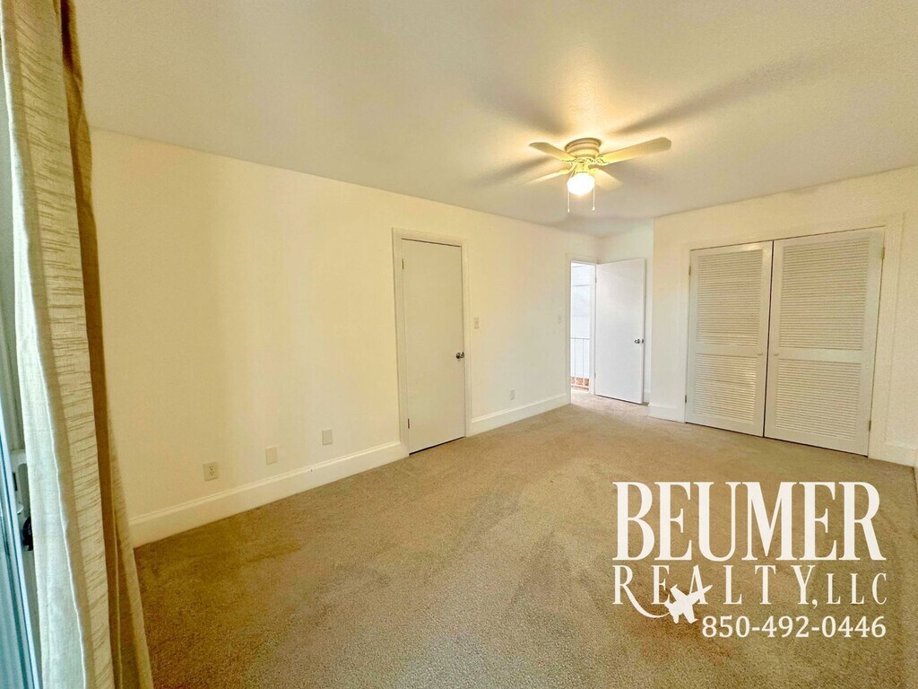 Welcome to this three-bedroom, two-bath townhouse located in Perdido Bay Villas, situated on Perdido Bay Golf Course and rests near the end of the cul-de-sac and has views of the 10th fairway. The first-floor master suite offers ample closet space and an en suite bathroom. The modern kitchen features natural wood cabinetry, butcher block countertops, updated appliances, and a tile backsplash—ideal for daily living and entertaining. It includes a pantry, breakfast nook, washer and dryer area, and access to the front patio. The open living and dining area features vaulted ceilings, luxury vinyl plank flooring, and French doors that open to a spacious backyard, perfect for gatherings and extending your living area outdoors. The sunroom provides views of the backyard and golf course. Upstairs, two sizable bedrooms each include large closets and sliding doors that allow natural light and fresh air; a full Jack-and-Jill bathroom is located between them, with two linen closets nearby. The community is quiet ideally located minutes from NAS West Gate, Perdido Key beaches, Big Lagoon State Park, and the 18-acre Garcon Bayou Nature Park, offering boating, kayaking, hiking, and waterfront recreation. Tenants are responsible for front landscape upkeep and fenced in backyard grass and utilities. No smokers. Dogs under 25lbs permitted with owner approval – $350 refundable pet fee per pet. No vicious breeds. Canine liability insurance is required. Application requires additional information (pay stub, rental reference, verification of Employment). Fee is $55 per adult over 18 years. A credit check and a min score of 630, background check, and rental verification required for applicants. Property manager is looking for overall credit payments made on time, ensuring you are not overextended on credit, no civil judgments, and debt to income ratio. Increased security deposit may be required. Elementary School: Helen Caro Middle School: Bailey High School: Escambia Call Beumer Realty for any questions .