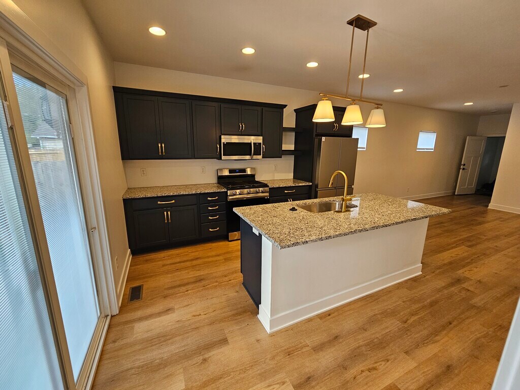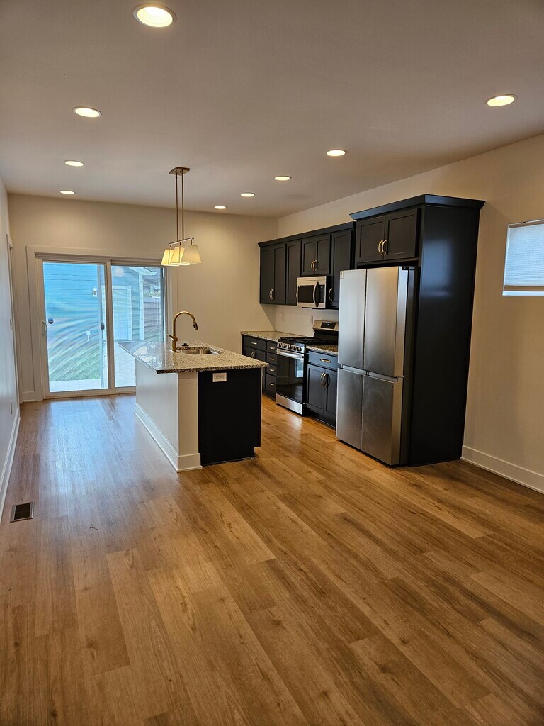 First floor of like-new duplex ready to move in! 2 bed, 2 full bath ensuite, open concept living and dining. Each bedroom boasts an ensuite full bathroom with spacious walk-in closets. Hardwood floors throughout. Stone countertops, gas stove and all modern stainless steel appliances! Laundry in unit. Detached 1 car garage, fenced yard, and extra on-street parking in a quiet neighborhood conveniently located to schools, shopping, and attractions. Pets welcome. Electronic door locks are included at no charge so don't worry about forgetting your keys or locking yourself out! Don't miss this opportunity! Apply today! 100% veteran owned and operated.