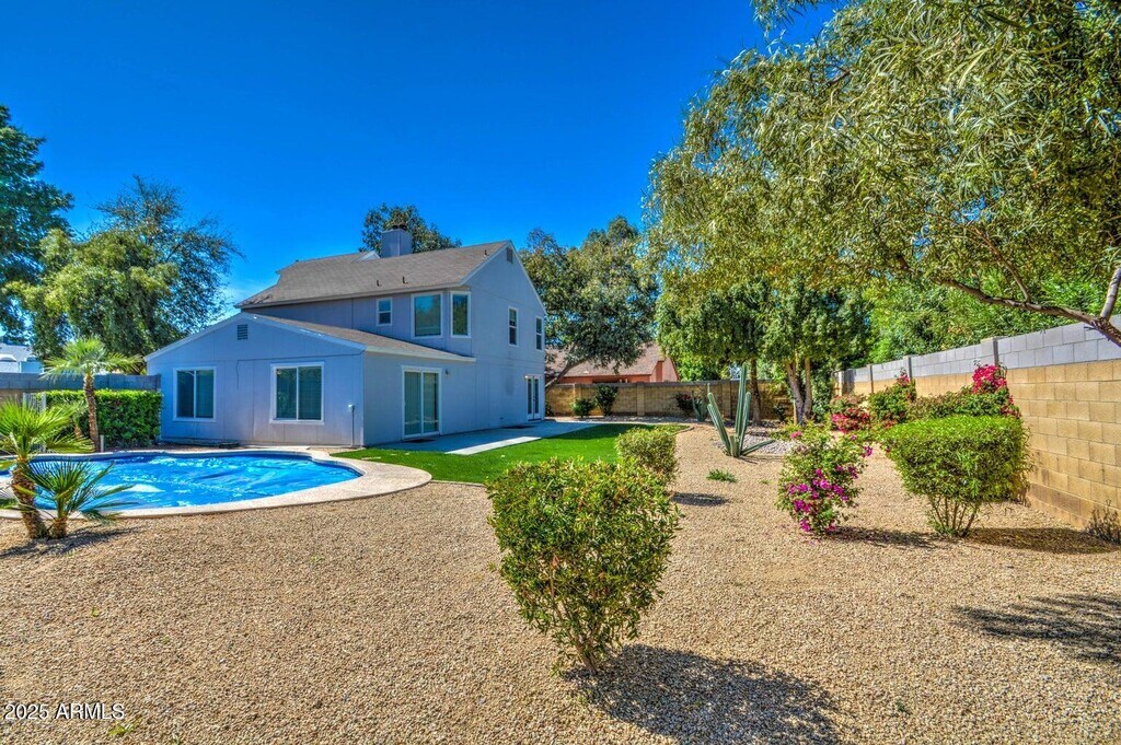 Stunning and immaculate 3 bed,2.5 bath Scottsdale home! Spacious layout with formal living and dining rooms,plus a cozy family room with two fireplaces. Gorgeous kitchen features granite countertops,upgraded cabinetry,stainless steel appliances,and stylish lighting. Primary suite offers comfort and space,with updated bathrooms throughout. Beautiful backyard oasis with lush mature landscaping,green grass,and a sparkling pool perfect for entertaining or relaxing. Meticulously maintained and move-in ready!
