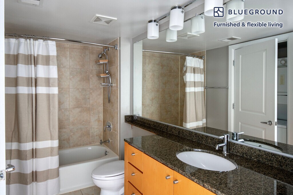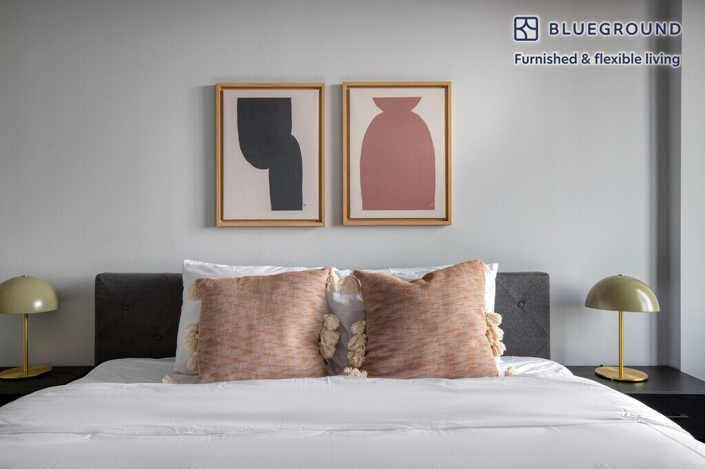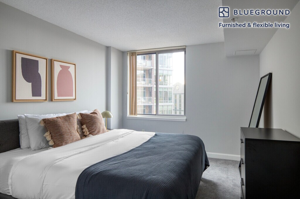 Discover the best of Bethesda, with this two bedroom apartment in Woodmont Triangle. It’ll be easy to simply show up and start living in this furnished apartment with its fully equipped kitchen, living room, and our dedicated, on-the-ground support. (ID #WDC725) The advertised rate of $1,730/month is the lowest available price, based on a 2 month(s) and 1 day(s) stay with a move-in date of October 8, 2025. If you’re looking for a 1-year stay, the rate is $3,270/month. Rates vary depending on the duration of stay, season, and other parameters. For exact pricing and additional pricing components, please visit our website and enter your desired move-in and move-out dates. The rate is applicable when billed upfront; it can be higher if billed in multiple payments. Brokers are welcome to reach out. Were you looking for an unfurnished lease? Try Blueground instead and upgrade from unfurnished to furnished living: - Furnished at rates comparable to unfurnished - No setup or furniture costs - save thousands - Move-in ready - save time, just bring your suitcase Designed with you in mind Thoughtfully designed with bespoke finishes, modern furnishings, and a fully equipped kitchen, you’ll enjoy that “I’m home” feeling with this Blueground apartment. Whether you’re lounging in your comfortable living room streaming the latest and greatest entertainment on the smart TV or premium wireless speaker, or getting some well-earned rest on the superior quality mattress with luxury linens, you’ll fall in love with everything this Woodmont Triangle apartment has to offer. This apartment also offers in-apartment laundry. Sleeping arrangements King Bed, 70.8in/180cm King Bed, 70.8in/180cm Amenities Building amenities unique to this two bedroom apartment include an on-site: - Doorman - Dryer - Elevator - Washing machine - Pets allowed - Rooftop BBQ Arrival and ongoing support The entire apartment is yours to enjoy! Throughout your stay, you’ll have access to our Client Experience team through the Blueground App. You can schedule additional cleanings, submit maintenance requests, and view our neighborhood recommendations with just a few taps. We’ll share all details upon confirmation of your stay. Other things to note Building amenities may have an extra cost. This Blueground apartment has flexible lease options, allowing you to book it for one month, a year, or more. Pets are welcome, though weight limits and breed restrictions apply and may incur fees. We take great pride in ensuring every photo displayed is shot in our own units with our actual furnishings. That said, we regularly refresh our decor and furniture arrangement, which may differ from what’s pictured.