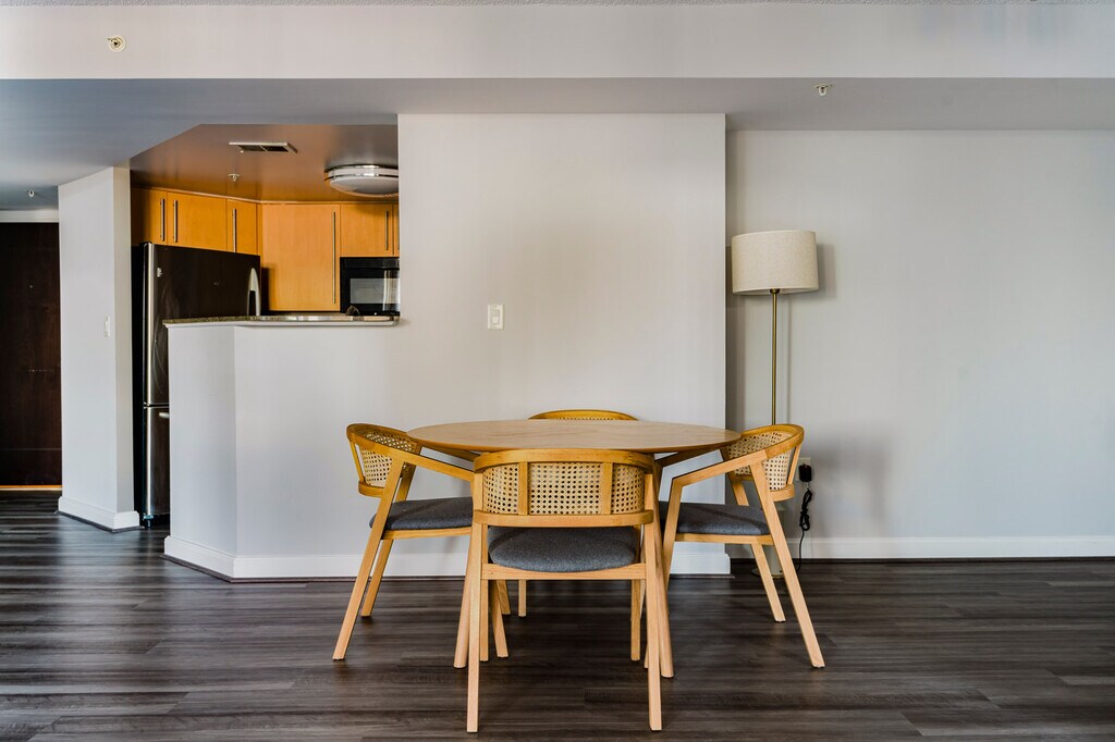 Similar space, but different These photos are of a similar space and style to this apartment. They’re intended to give you a sense of Blueground’s design style. Exact furniture and layout will be different. Be the first to rent! Feel at home wherever you choose to live with Blueground. You’ll love this spacious Woodmont Triangle furnished two bedroom apartment with its modern decor, fully equipped kitchen, and roomy living room. Ideally located, you’re close to all the best that Bethesda has to offer! (ID #WDC1202) The advertised rate of $1,890/month is the lowest available price, based on a 1 month(s) and 4 day(s) stay with a move-in date of November 28, 2025. If you’re looking for a 1-year stay, the rate is $3,680/month. Rates vary depending on the duration of stay, season, and other parameters. For exact pricing and additional pricing components, please visit our website and enter your desired move-in and move-out dates. The rate is applicable when billed upfront; it can be higher if billed in multiple payments. Brokers are welcome to reach out. Were you looking for an unfurnished lease? Try Blueground instead and upgrade from unfurnished to furnished living: - Furnished at rates comparable to unfurnished - No setup or furniture costs - save thousands - Move-in ready - save time, just bring your suitcase Designed with you in mind Thoughtfully designed with bespoke finishes, modern furnishings, and a fully equipped kitchen, you’ll enjoy that “I’m home” feeling with this Blueground apartment. Whether you’re lounging in your beautiful living room streaming the latest and greatest entertainment on the smart TV or premium wireless speaker, or getting some well-earned rest on the superior quality mattress with luxury linens, you’ll fall in love with everything this Woodmont Triangle apartment has to offer. This apartment also offers in-apartment laundry. Sleeping arrangements Queen Bed, 63in/160cm Queen Bed, 63in/160cm Amenities Building amenities unique to this two bedroom apartment include an on-site: - Doorman - Dryer - Elevator - Washing machine - Pets allowed - Rooftop BBQ Arrival and ongoing support The entire apartment is yours to enjoy! Throughout your stay, you’ll have access to our Client Experience team through the Blueground App. You can schedule additional cleanings, submit maintenance requests, and view our neighborhood recommendations with just a few taps. We’ll share all details upon confirmation of your stay. Other things to note Building amenities may have an extra cost. Photos are from a similar property. This Blueground apartment has flexible lease options, allowing you to book it for one month, a year, or more. Pets are welcome, though weight limits and breed restrictions apply and may incur fees. [SI]