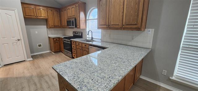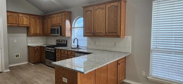 ABSOLUTELY STUNNING home with thousands of dollars in upgrades! BRAND NEW Luxury Vinyl Plank Flooring. BRAND NEW Stainless Steel Appliances. NEWER GORGEOUS Granite Countertops. FRESH PAINT. Large living area with vaulted ceilings and stunning gas fireplace. Cooks Delight kitchen with new granite and stainless steel appliances. Breakfast Bar and charming breakfast nook. Luxurious primary suite with vaulted ceiling, ceiling fan, HUGE walkin closet, dual sinks, garden tub, and separate shower. Both guest bedrooms are nice sized with ceiling fans and large closets. Lush green backyard with a fantastic covered patio. Great neighborhood with community pool, park, and playground. Close to schools, restaurants and shopping. KELLER ISD! HURRY! THIS WILL GO FAST!