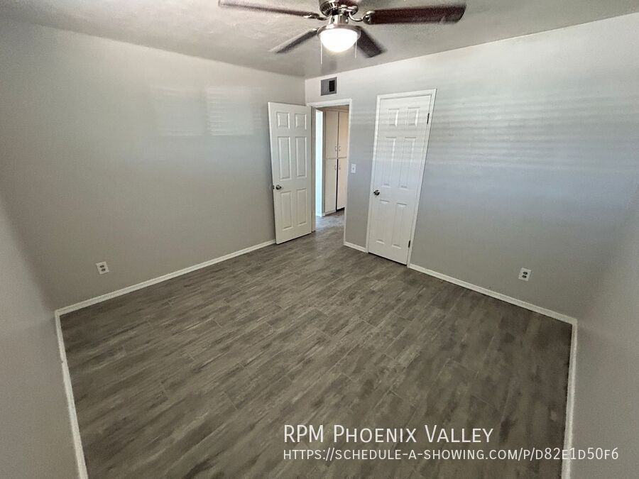 Renovated 2/1 Single Story Unit *NO* Carpet Near Phx Sky Harbor Airport! Main living area also includes new faux wood blinds and leads into the fully stacked kitchen including a fridge, dishwasher, white cabinets and a stacked washer & dryer (new stove to be installed just after move in). Enclosed back patio off of the kitchen. Two bedrooms with closets share a hall bath with white cabinets. Refinished hall cabinets including new door hardware! Community open landscaping area perfect area for children to play. Home is friendly to a max of two spayed/neutered pets with $550.00 per pet fee. We do not list on CRAIGSLIST OR FACEBOOK MARKETING PLACE SO IF YOU SEE IT ON THERE IT IS A SCAM $50.00 non-refundable application fee per person, age 18 or over. Base rent doesn't include $75 Water / Sewer /Trash fee. Move in date must be between 7 & 30 days from lease signing/payment of security deposit. If moving in on or after the 5th then pro-rated current month rent is due as well as the following full month. All rent is due 7 days prior to move in. Fridge Range/Stove Washer/Dryer In Unit
