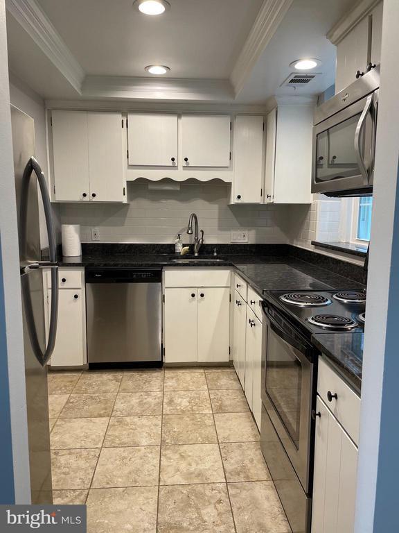 Top floor unit available June 1st! This condo has a newer HVAC (2019), water heater, and double hung windows were installed in 2020. There's LED recessed lighting in living room, bedroom and kitchen with dimmer switches. The white kitchen features granite countertops and stainless steel appliances including built in microwave. The attic above has area available for storage. There's neutral paint and carpet throughout. It's located on a quiet dead end street. The tenant is responsible for electric and cable/internet . Don't miss this gem in a super convenient location!