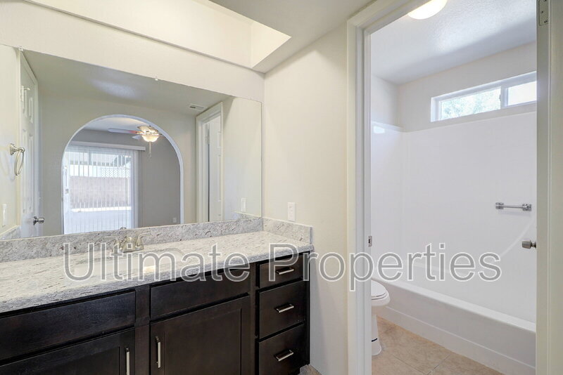 3 Bedroom + 2 Bath. Upgrades throughout!! Beautiful cabinets and granite counters in the kitchen and bathrooms! Kitchen features stainless-steel appliances, range/oven, built-in microwave, dishwasher, refrigerator. Separate family and living rooms. Living room features beehive fireplace. Ceiling fans and blinds throughout. Also includes washer and dryer. Beautiful grass backyard with large patio. LARGE patio door from the living room and another patio door from the master suite to access the backyard. NO HOA!! Pet Details: All Pets Allowed