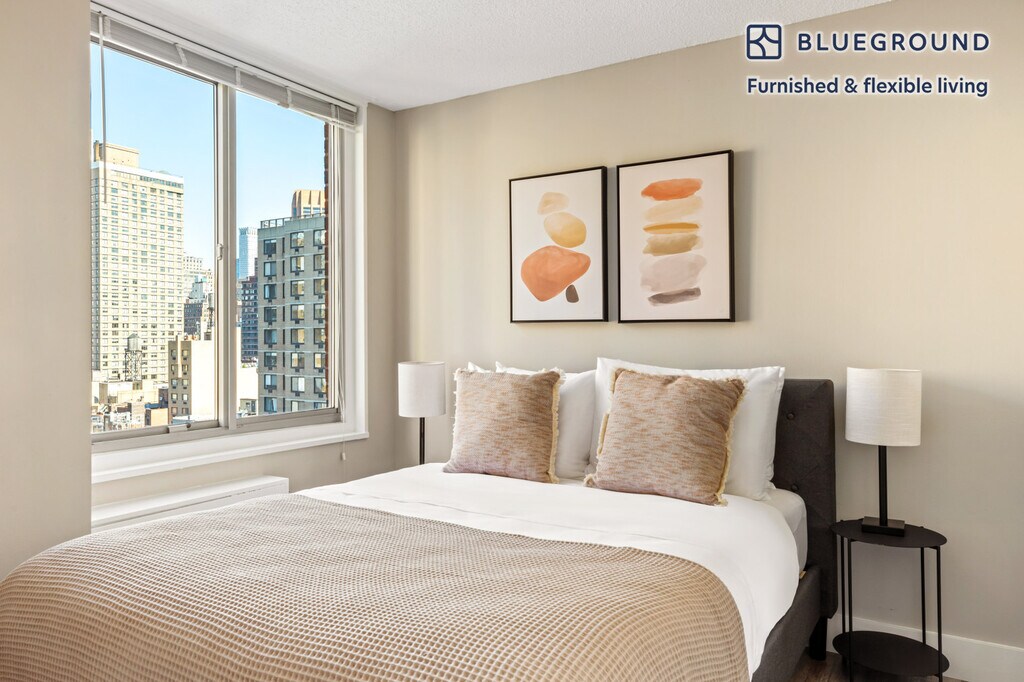 Show up and start living from day one in New York with this lovely one bedroom Blueground apartment. You’ll love coming home to this thoughtfully furnished, beautifully designed, and fully equipped Kips Bay home with stunning views over the city. (ID #NYC911) The advertised rate of $4,500/month is the lowest available price, based on a 1 month(s) stay with a move-in date of April 14, 2026. If you’re looking for a 1-year stay, the rate is $5,330/month. Rates vary depending on the duration of stay, season, and other parameters. For exact pricing and additional pricing components, please visit our website and enter your desired move-in and move-out dates. The rate is applicable when billed upfront; it can be higher if billed in multiple payments. Brokers are welcome to reach out. Were you looking for an unfurnished lease? Try Blueground instead and upgrade from unfurnished to furnished living: - Furnished at rates comparable to unfurnished - No setup or furniture costs - save thousands - Move-in ready - save time, just bring your suitcase Designed with you in mind Thoughtfully designed with bespoke finishes, modern furnishings, and a fully equipped kitchen, you’ll enjoy that “I’m home” feeling with this Blueground apartment. Whether you’re lounging in your stylish living room streaming the latest and greatest entertainment on the smart TV or premium wireless speaker, or getting some well-earned rest on the superior quality mattress with fully stocked linens, you’ll fall in love with everything this Kips Bay apartment has to offer. Sleeping arrangements Queen Bed, 63in/160cm Amenities Building amenities unique to this one bedroom apartment include an on-site: - Basketball Court - BBQ Area - Doorman - Dryer in building - Elevator - Washing machine in building - Pets allowed - Playground Arrival and ongoing support The entire apartment is yours to enjoy! Throughout your stay, you’ll have access to our Client Experience team through the Blueground App. You can schedule additional cleanings, submit maintenance requests, and view our neighborhood recommendations with just a few taps. We’ll share all details upon confirmation of your stay. Ideally Located This furnished property is situated in Kips Bay. Stretching from the East River to Lexington Avenue, the peaceful neighborhood offers convenience and easy access to the rest of the city. Several hospitals are located here, making it a hub for medical care. Kips Bay offers dining options for every budget as well as numerous cinemas and fitness centers. During the weekends, locals stroll alongside the water, take the water taxi to another borough, or hang out in one of the parks, such as Bellevue South. From here, Rockefeller Center is only 20 minutes away by subway. Other things to note Building amenities may have an extra cost. This Blueground apartment has flexible lease options, allowing you to book it for one month, a year, or more. Pets are welcome, though weight limits and breed restrictions apply and may incur fees. Brokes CYOF. We take great pride in ensuring every photo displayed is shot in our own units with our actual furnishings. That said, we regularly refresh our decor and furniture arrangement, which may differ from what’s pictured. Also note - The apartment's building is undergoing renovations, and you may hear construction noise inside your apartment from time to time - Building requires 48h to confirm the booking and validate the required documents [SI]