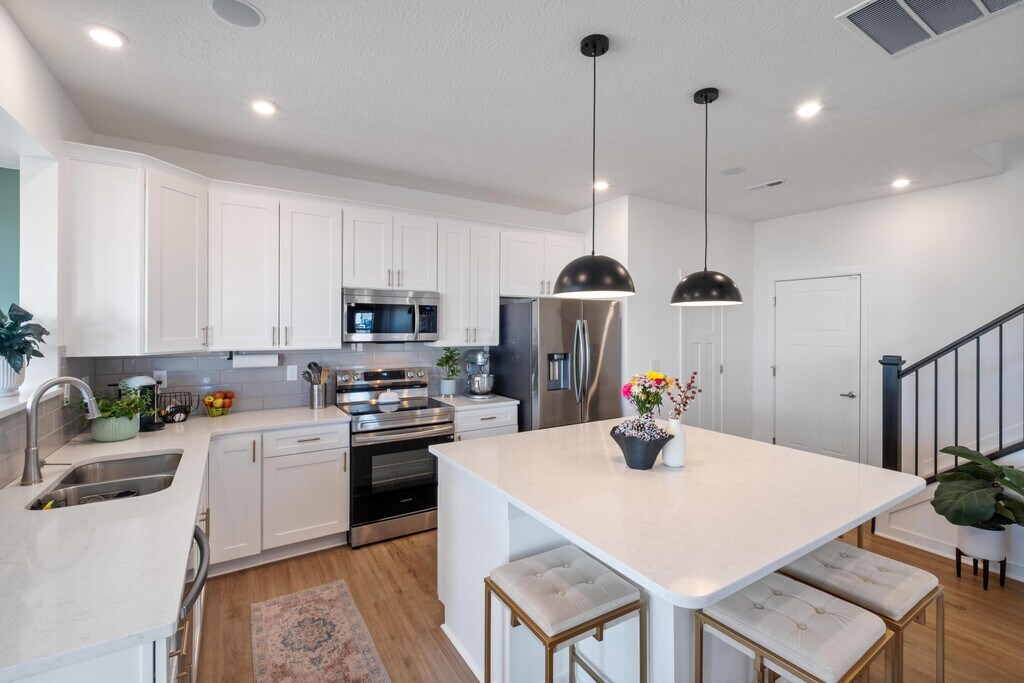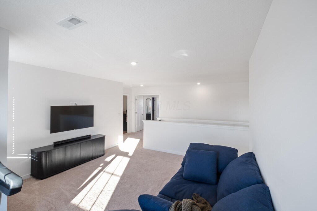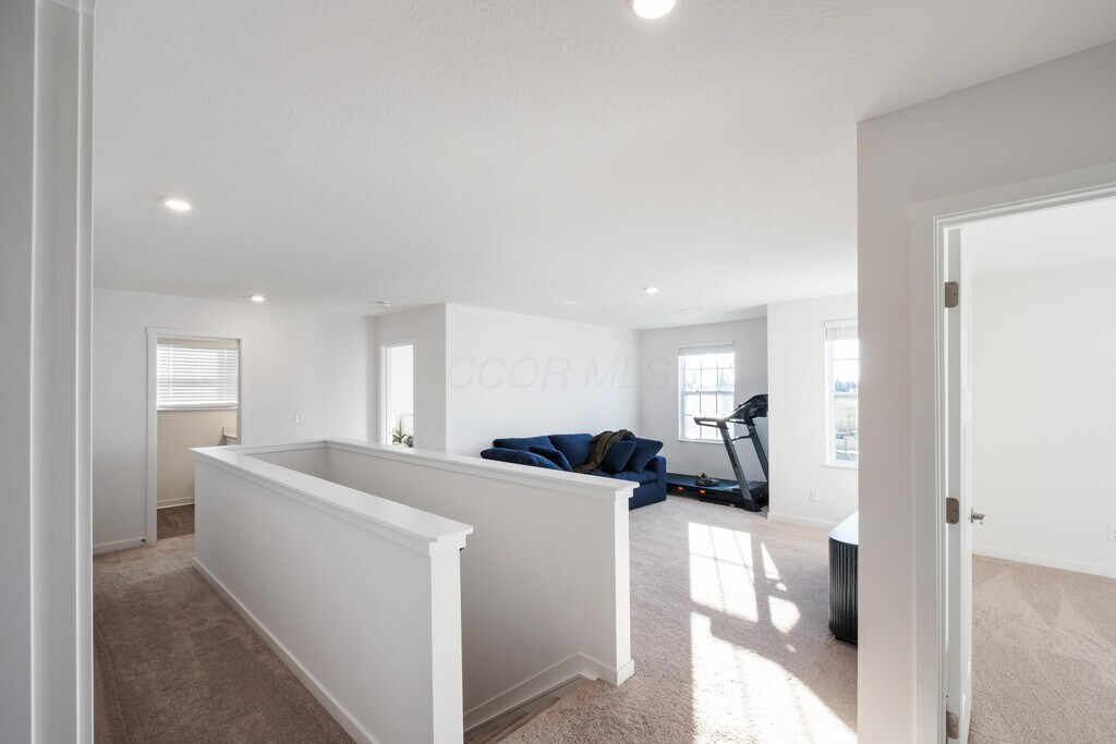 Sunset views,designer finishes,and thousands in move-in-ready upgrades already included--this nearly new 2025 home offers luxury without the added cost or wait of new construction. Featuring 3 bedrooms,a spacious loft,2.5 baths,and a bright open-concept layout filled with natural light,this home was thoughtfully designed for both everyday living and entertaining. A dedicated home office with stunning sunset views makes working from home a pleasure. Start your mornings in the oversized sunroom--perfect for coffee,dining,or a second living space as sunlight pours in. The chef-inspired kitchen showcases a large quartz island,modern Samsung stainless steel appliances (including the refrigerator),abundant cabinetry,and a generous pantry. Luxury vinyl plank flooring flows throughout the first floor,complemented by clean craftsman trim. Relax by the stone-façade gas fireplace or step outside to your custom outdoor patio--already completed and ready for summer BBQs and fire-pit nights. Additional upgrades include 2-inch faux wood blinds throughout,a water softener,in-ceiling speakers in the kitchen and owner's suite,and the refrigerator--all eliminating typical new-build add-on costs. The owner's suite is a private retreat with double doors and a spa-like bath featuring a luxury hotel-style shower. Enjoy peace of mind with over one year remaining on the mechanical warranty and more than nine years of structural warranty. Located in a walkable community with a park and stocked fishing pond,just steps from coffee,pizza,ice cream,and a convenience store. Only 10 minutes to Kroger,Meijer,and I-71,15 minutes to Stringtown Road shopping and dining,25 minutes to downtown,and 30 minutes to Easton Town Center. This home truly checks every box--schedule your private tour today.