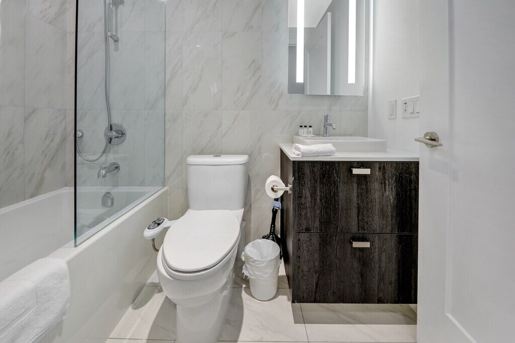 Discover the allure of Downtown Toronto with this exquisite condo at The Well, a highly sought-after location. This European-influenced urban space offers luxury retail, a food hall, markets, restaurants, and entertainment venues. Feel at home in this fully furnished suite, complete with a fully equipped kitchen and in-suite laundry. This condo is thoughtfully designed with a fully equipped kitchen, a queen bed, and a queen sofa bed. Relax in the cozy living area with a smart TV and enjoy high-speed fibre internet for all your entertainment needs. Enhance your stay with access to state-of-the-art fitness facilities and a rooftop pool, perfect for unwinding after a busy day in the city. Nestled in the heart of Downtown Toronto, The Well offers unparalleled access to luxury retail, diverse dining options, and vibrant entertainment venues. Explore the neighborhood's lively atmosphere and enjoy the convenience of having everything you need just steps away. This condo is professionally managed by a trusted partner, ensuring a seamless living experience. The in-suite workspace is equipped with a desk and chair, providing a comfortable environment for remote work. High-speed fibre internet ensures a seamless connection for all your professional needs. [SI]