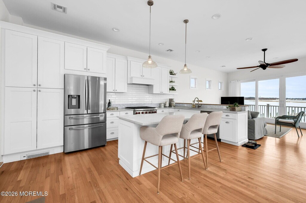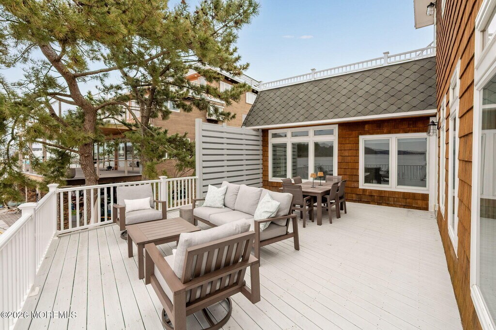 Coastal Dream Retreat - River to Ocean Escape! Nestled in the heart of the North End beach,the best location Sea bright has to offer,this stunning 4-bedroom,3-bath waterfront home offers breathtaking views from five decks. Open-concept kitchen,living,and dining areas feature hardwood floors and a wall of glass showcasing the Shrewsbury River,endless ocean horizon,and lush Hartshorne Woods. Designed for seaside living and effortless entertaining,enjoy a private en suite primary bedroom with its own deck and bath. Direct beach access,a 110' dock,and a private sandy stretch for fishing,kayaking,and sun-soaked relaxation. Car port,ample parking and access to the river! Just minutes from the Sea Streak ferry for a breezy NYC commute,plus Sandy Hook's pristine beaches and the and the area's finest coast dining. Avail for annual June 7th,or summer rental at 25K for June,35K for July and 35K for August. Will not do separate leases for month.