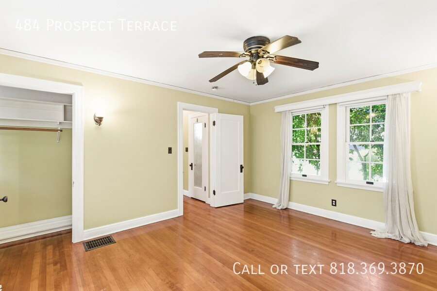 Tucked behind the front home at 484 Prospect Terrace, this enchanting 1 bedroom, 1 bath back house feels like something out of a storybook. Hidden beyond a shared courtyard and wrapped in greenery, the setting is pure cottage-in-the-woods magic, with the kind of old-world charm that makes you half expect woodland creatures to help with the morning routine. Sunlight filters through the trees, the garden paths wind through lush surroundings, and every corner feels hushed, romantic, and just a little bit bewitched. Inside, the home is full of character, warmth, and timeless details. There are gorgeous wood floors, charming windows, soft natural light, and rooms that feel both cozy and graceful. The kitchen has a cheerful vintage spirit, the bathroom is full of classic charm, and the entire home carries that rare feeling of being lovingly tucked away from the world. It is the kind of place that invites slow mornings, open windows, tea in the courtyard, and a life that feels a touch more magical. The courtyard is shared with the front house, and future tenants should be happy living alongside one very important local resident: a large fluffy dog who roams the courtyard like a benevolent forest guardian. She is sweet, loving, majestic, and very much part of the charm here. Street parking only with Pasadena city permits, but parking is easy with convenient access right out front or out back through the rear gate. If you’ve been hoping for a rental that feels less like an apartment and more like a hidden cottage from a fairy tale, this one may be your happily ever after.