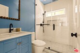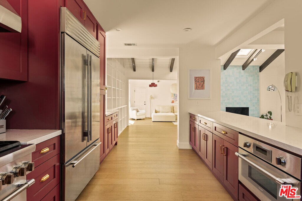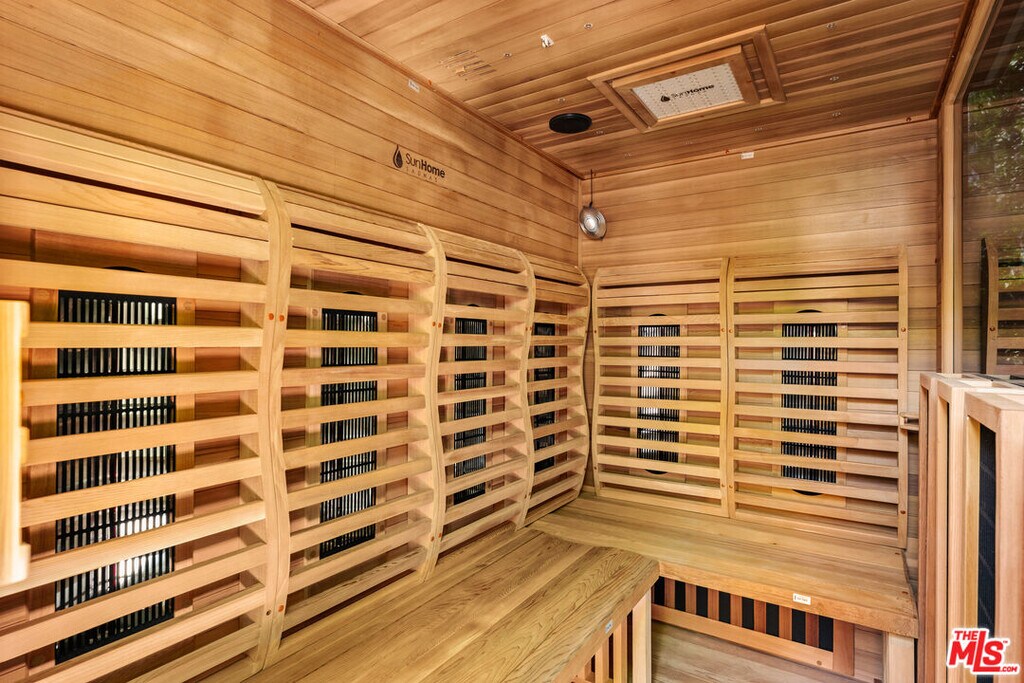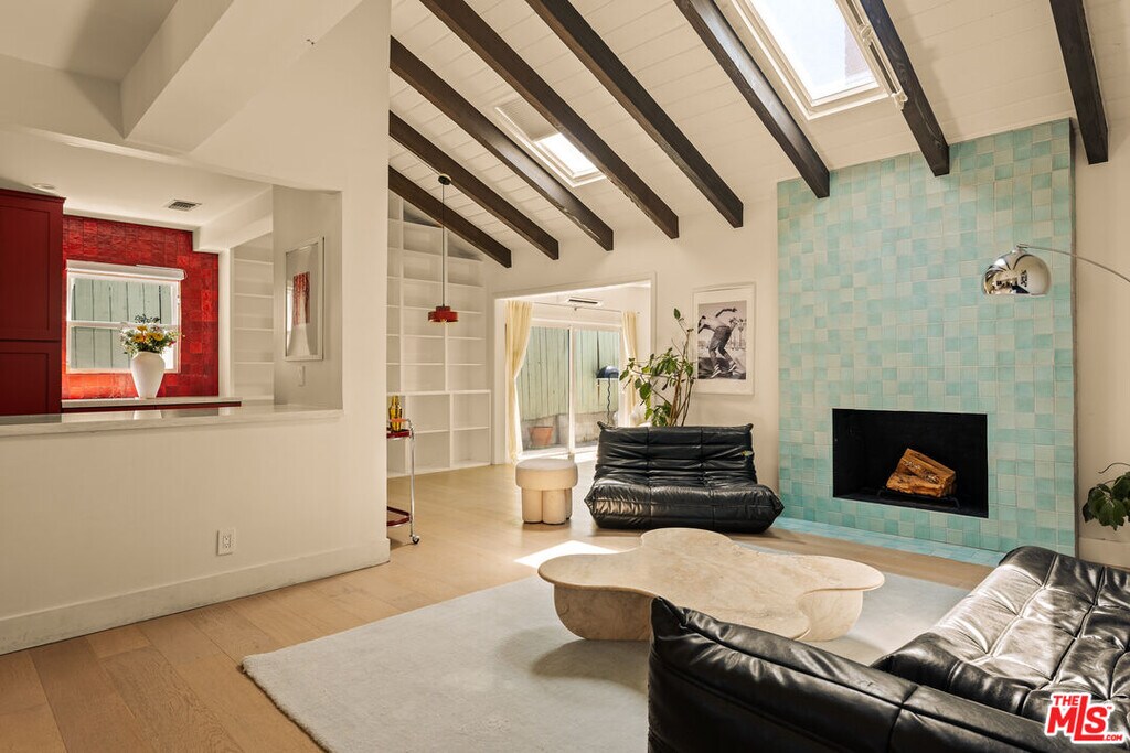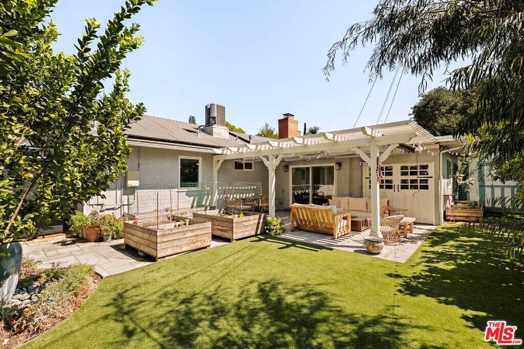 Set behind a gated entry, 4841 Don Pio Dr is a thoughtfully designed and well-maintained home that offers the perfect blend of privacy and style in the heart of Woodland Hills. This beautifully updated 3-bedroom, 2-bath residence features an open-concept layout with exposed beams, skylights, and abundant natural light throughout. The newly renovated kitchen boasts top-of-the-line stainless steel appliances, ample cabinetry, and a vibrant tile backsplash. In the living room, a striking teal-tiled fireplace serves as a bold centerpiece, seamlessly connecting to the dining area framed by floor-to-ceiling bookshelves. A secondary living room with double exposure opens directly to the backyard. The spacious primary suite includes an en-suite bathroom, while two additional bedrooms offer flexibility. Plus, the home includes a versatile bonus room that is ideal for a home office, studio, or gym. Outside, enjoy a covered patio with turf, a relaxing sauna, mature citrus trees, and flourishing garden beds. Located near Ventura Blvd and The Commons at Calabasas, this home combines serene living with unbeatable convenience. MLS# 25581137