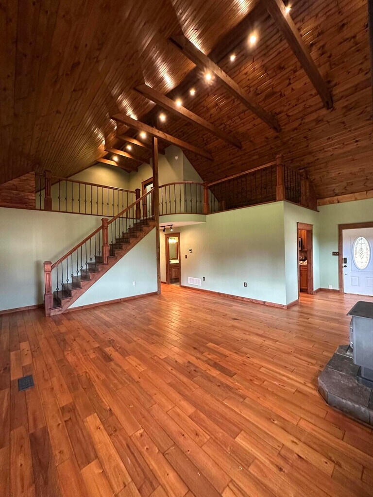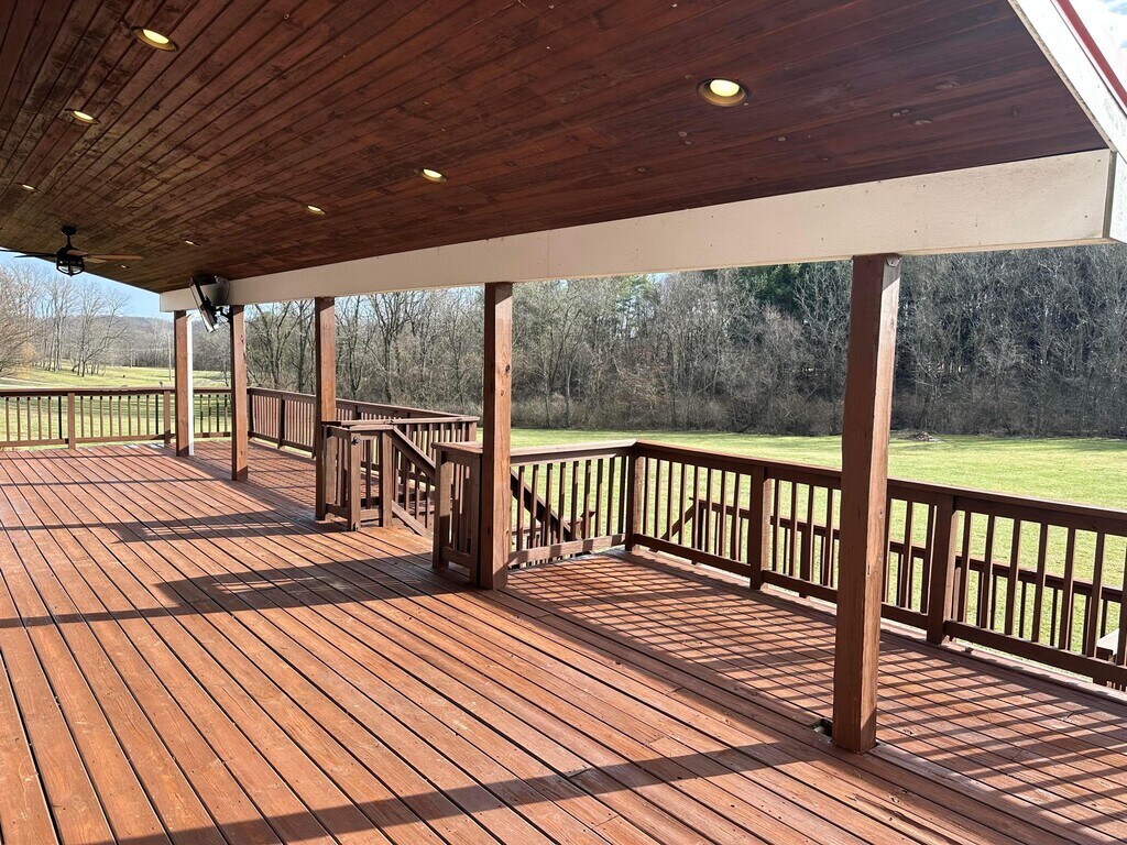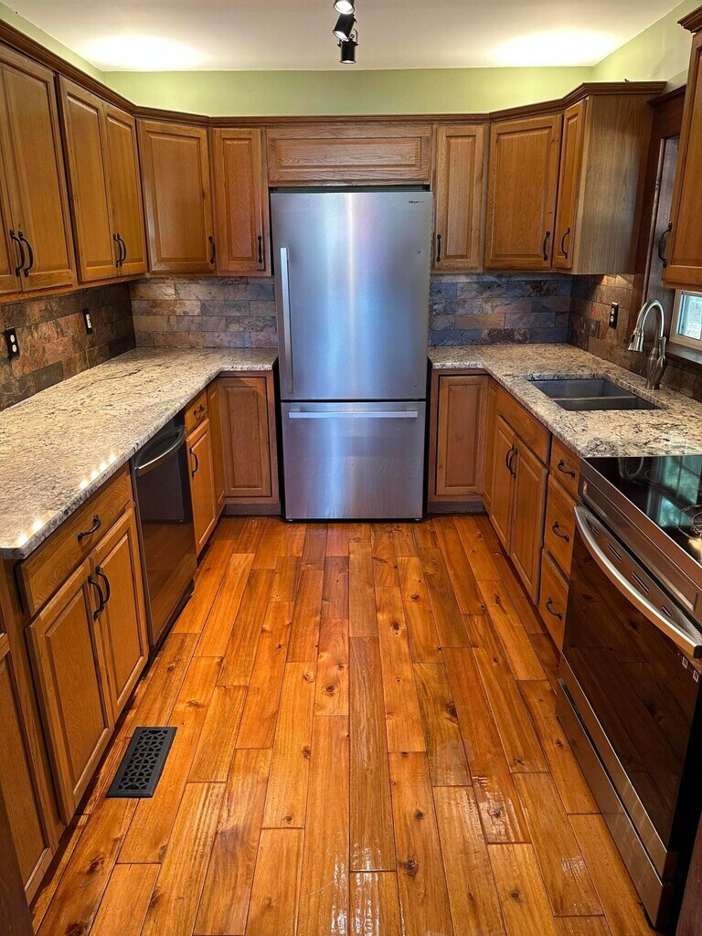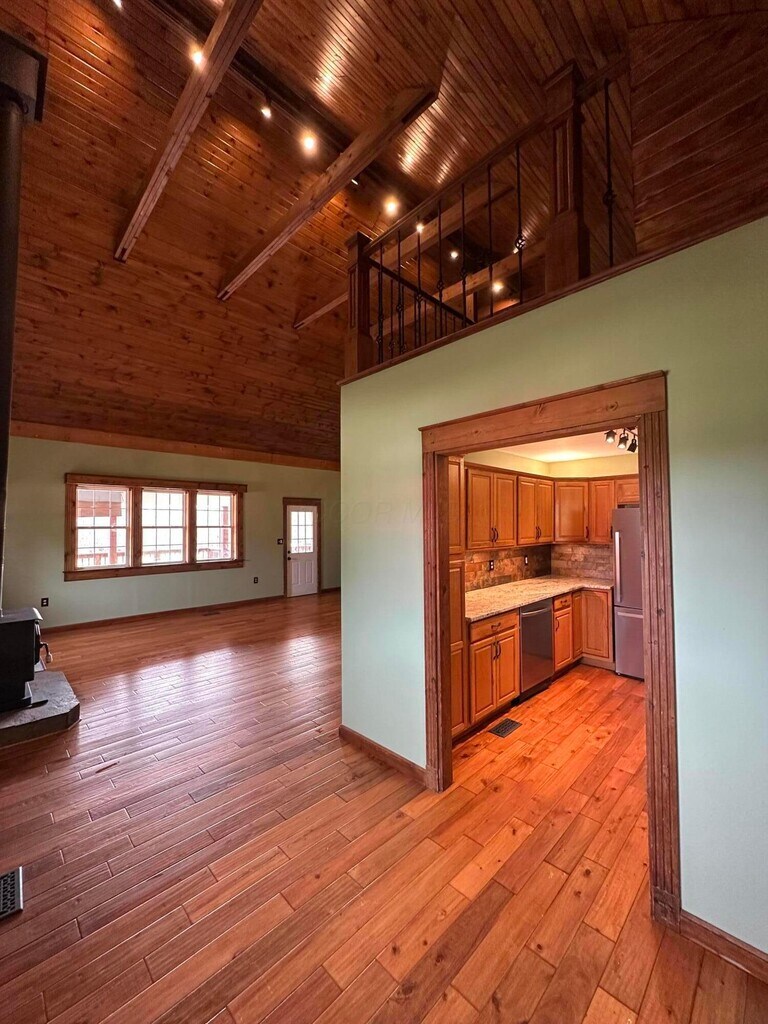 Private Country Retreat on Nearly 5 Acres - 5 Bedrooms,2 Full Baths Tucked behind a serene row of pine trees,this beautifully maintained 5-bedroom,2-full-bath home offers the perfect blend of modern updates and peaceful country living on just under 5 acres. Inside,you'll find real hand-scraped hardwood floors,authentic slate flooring and slate backsplashes,freshly painted interiors,and brand-new carpet throughout. The kitchen is equipped with a brand-new refrigerator and microwave,with the range and dishwasher replaced just two years ago. A wood stove capable of heating the entire home adds warmth and efficiency,complemented by LED lighting throughout. Step outside to enjoy a stunning 1,500 sq ft wrap-around deck—freshly stained and ready for entertaining—with an outdoor TV,overhead lighting,ceiling fan,and hot tub hookup. A year-round creek runs along the back of the property,where you can explore nature,find crystals,fossils,and mushrooms,and enjoy the beauty of multiple mature black walnut trees. Animal lovers will appreciate the large chicken and pig enclosures,with chickens included so you can enjoy fresh eggs from day one. Additional features include a massive 48x32 (1,536 sq ft) garage built in 2016 with concrete floors,LED lighting,and a wood stove; a large driveway; washer and dryer included; and a water softener system,pressure tank,and hot water tank all replaced within the last two years. Conveniently located just 4.5 miles from Clear Creek Metro Park,2.5 miles from the historic Hanaway Covered Bridge,and 3 miles from Two Glaciers Park,this home is in the Amanda-Clearcreek School District and offers both privacy and accessibility. This one-of-a-kind property is ready to welcome you home.
