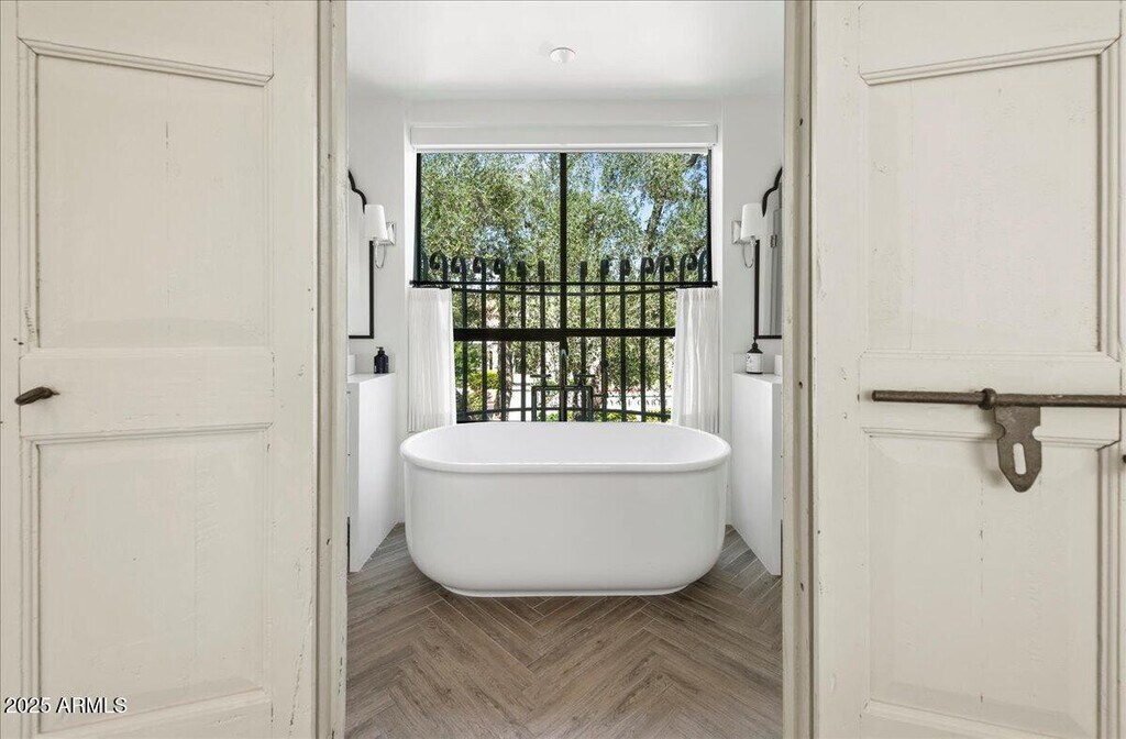 The fabulous Mediterranean townhome was rebuilt with passion in every detail. European appliances,RH finishes,handmade tile and Waterworks fixtures that complement the Moroccan Tadelakt plaster showers. Old-world warmth and charm perfectly couple with modern design creating a rich environment loaded with the elegance and comfort,The herringbone floors,antique arched doors & reclaimed wood shelves juxtapose the sharp,trim-less wall finishes,floating stairs and glass railings. Savor a drink al fresco from the private spa,enjoy Old Town Scottsdale's world-class shopping and dining located just steps away,and take in the exceptional Camelback Mountain views from this private sun filled residence. This stunning home is accompanied by an absolutely phenomenal!