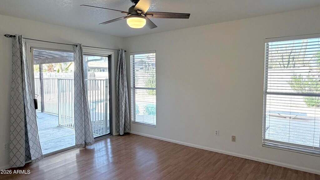 Beautiful 3-bedroom + den home featuring fresh interior paint and no carpet throughout. Relax in the private backyard with a pool,mature landscaping,and mountain views. RV gate and excellent location near South Mountain Park,dining,shopping,and major freeways. Washer,dryer,and refrigerator included. Pool service paid by landlord. Yard will be cleaned before tenant move-in.