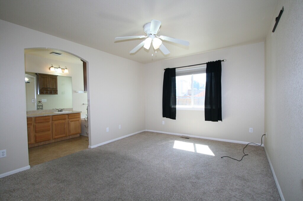 This lovely property has new carpet throughtout! Covered front porch enters to formal living room with 10+ft ceilings, great office or flex space! Open kitchen with soaring ceilings, recessed lighting, counter bar, and pantry! Adjacent family room walks out to fenced backyard. Primary bedroom on main level with attached 5 peice bath and walk in closet! Upper story includes 2 additional bedrooms with ample closet space, full bath and cozy loft area. Unfinished basement for plenty of additional storage! Additional features include central air, provided washer/dryer and auto-sprinkler system. Easy access to Powers Corridor and Fort Carson. 12-36 Month Lease Security deposit must be paid on certified funds. Amount based on credit report findings. Allows 2 pets, any weight. Management approval needed. No aggressive breeds School District: 3- Widefield Elementary School: Venetucci Middle School: Watson High School: Widefield For more information, visit our website at: