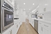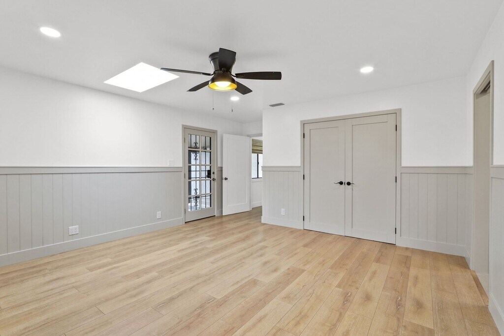 Welcome to this beautifully remodeled three-bedroom, two-bathroom home located in Long Beach, CA, nestled in the quaint Lakewood Park area. Thoughtfully designed to blend rustic character with contemporary finishes, this home offers an inviting atmosphere paired with everyday functionality.A formal entry leads into a light-filled interior, opening to a bright and open kitchen appointed with stainless steel appliances, white shaker cabinetry, subway tile backsplash, and white quartz countertops. The open-concept galley kitchen features a breakfast bar and overlooks the spacious family and dining area, complete with a cozy fireplace and sliding glass doors that open to a covered patio. Direct access to the attached two-car garage adds convenience.The primary suite is complemented by an adjacent full-size laundry room with ample storage, a utility sink, drying bar, and custom shelving. The primary bedroom includes custom wainscoting, dual walk-in closets, a ceiling fan, skylight, and direct access to the covered patio. The primary bathroom is generously appointed with an oversized two-person shower with dual shower heads, a soaking tub, dual vanities, Newport Brass fixtures, Taj Mahal stone countertops, custom arched closet doors, and extensive built-in storage.Two additional bedrooms are located near the hall bathroom and a separate entertainment room featuring custom built-in cabinetry and a window seat. The hall bathroom includes a walk-in shower with an oversized niche, floating shelves, subway tile, and marble hexagon tile flooring. Gold and black accents create a refined blend of vintage and modern design.Designer accent walls throughout the home add visual interest, while luxury plank vinyl flooring provides durability and easy maintenance. Outdoor features include a covered patio and gazebo, ideal for entertaining or relaxing. Additional highlights include central heating and air conditioning, an attached two-car garage with direct home access, and convenient proximity to local shops, dining, parks, recreation areas, and major roadway access. AVAILABLE FOR February 1 2026 Occupancy.NO PETS, NO SMOKING. BEWARE OF RENTAL SCAMS Offered by Holly Kovich & Associates SHOWN BY APPOINTMENT ONLY