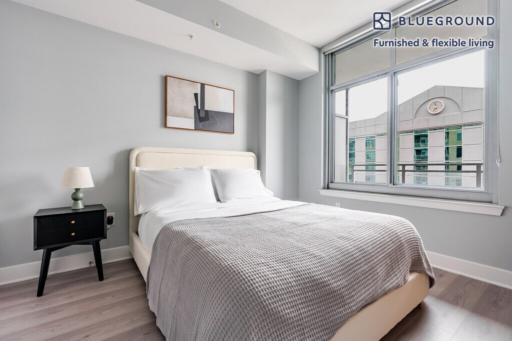 Feel at home wherever you choose to live with Blueground. You’ll love this stylish Woodmont Triangle furnished one bedroom apartment with its modern decor, fully equipped kitchen, and exquisite living room. Ideally located, you’re close to all the best that Bethesda has to offer! (ID #WDC1064) The advertised rate of $3,370/month is the lowest available price, based on a 1 month(s) and 8 day(s) stay with a move-in date of April 29, 2026. If you’re looking for a 1-year stay, the rate is $2,660/month. Rates vary depending on the duration of stay, season, and other parameters. For exact pricing and additional pricing components, please visit our website and enter your desired move-in and move-out dates. The rate is applicable when billed upfront; it can be higher if billed in multiple payments. Brokers are welcome to reach out. Were you looking for an unfurnished lease? Try Blueground instead and upgrade from unfurnished to furnished living: - Furnished at rates comparable to unfurnished - No setup or furniture costs - save thousands - Move-in ready - save time, just bring your suitcase Designed with you in mind As with any Blueground apartment, you’ll find a thoughtfully designed space complete with beautiful furniture and a fully equipped kitchen in this one bedroom property. And, thanks to our superior quality mattresses, fully stocked linens, and towels, you can relax knowing you’ll always feel comfortably at home. When you’re ready for some fun, you can take in the Bethesda vibes or bring the entertainment to you with the premium wireless speaker or smart TV. This apartment also offers in-apartment laundry. Sleeping arrangements Queen Bed, 63in/160cm Amenities Building amenities unique to this one bedroom apartment include an on-site: - BBQ Area - Doorman - Dryer - Elevator - Swimming pool - Washing machine - Parking - Pets allowed - Rooftop BBQ Arrival and ongoing support The entire apartment is yours to enjoy! Throughout your stay, you’ll have access to our Client Experience team through the Blueground App. You can schedule additional cleanings, submit maintenance requests, and view our neighborhood recommendations with just a few taps. We’ll share all details upon confirmation of your stay. Other things to note Building amenities may have an extra cost. This Blueground apartment has flexible lease options, allowing you to book it for one month, a year, or more. Pets are welcome, though weight limits and breed restrictions apply and may incur fees. Parking is offered based on availability and is subject to a fee. We take great pride in ensuring every photo displayed is shot in our own units with our actual furnishings. That said, we regularly refresh our decor and furniture arrangement, which may differ from what’s pictured. [SI]