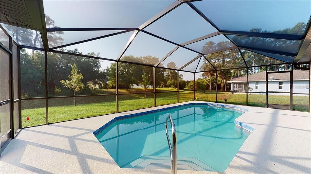 Looking to move in quickly? This home is available through a Lease-Option Purchase Program,allowing you to rent now while securing the exclusive right to buy later. Contact the listing agent for full terms ***BRAND NEW POOL HOME ON FRESHWATER CANAL*** This yard comes equipped with a multiple zone sprinkler system.. Featuring TWO Master Suites! As you walk through the front door you are greeted with a large open living area and vaulted ceilings. Light pours in through the pocket sliding door that leads out to the private pool and freshly landscaped yard overlooking a Freshwater Canal. Enjoy an elevated kitchen design featuring granite countertops,wood cabinets with soft close drawers,stainless steel appliances,and pantry closet and impact windows and sliders. With plenty of room to spread out in this split-floor plan,your family and visitors will enjoy the tile that flows throughout the living area and all wet areas of the home as well as the warmth of carpeted bedrooms. Each master suite offers a generous footprint and plenty of storage space with his & hers walk-in closets. The spaciousness continues into each master bathroom which offers double sinks,oversized walk-in tiled showers,ample lighting and linen closets. Granite countertops and wood cabinets with soft close drawers are provided in each of the three full bathrooms. The third bathroom acts as a pool bath and the third bedroom offers even more space to help you call this house your home! Enjoy peace of mind with a 2-10 New Construction Home Warranty included in the sale of this brand new home. This home won't last long... Schedule your showing today! The pics are from the same builder and floor plan but reversed of a previous completed house. The pictures from the previous build may have different design,fixtures and color and flooring choices. Taxes reflect the land only. A few of the pool pictures are renderings from the pool company. The pool will be completed early next year after the home is completed. MLS# C7524215