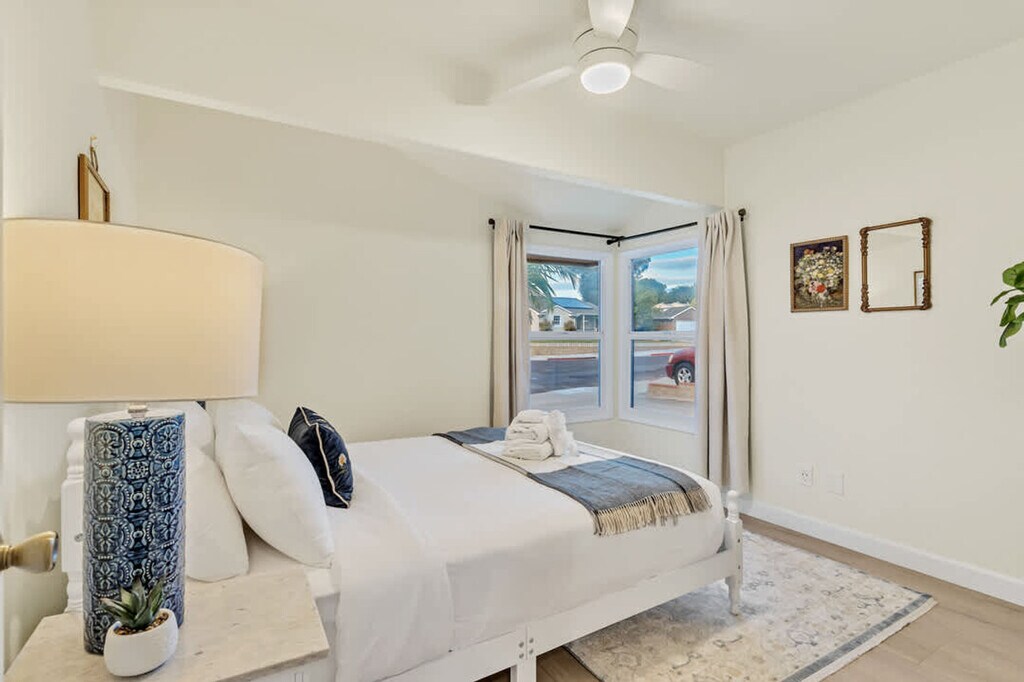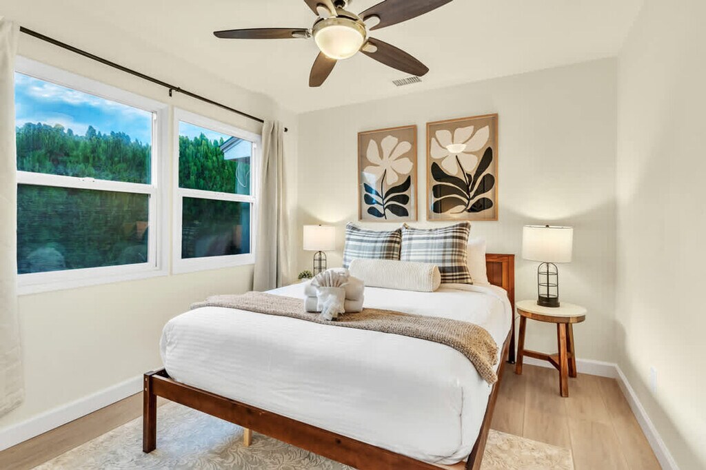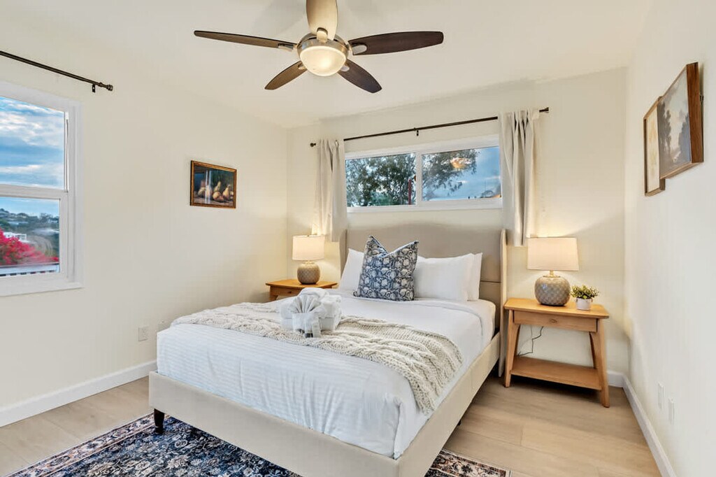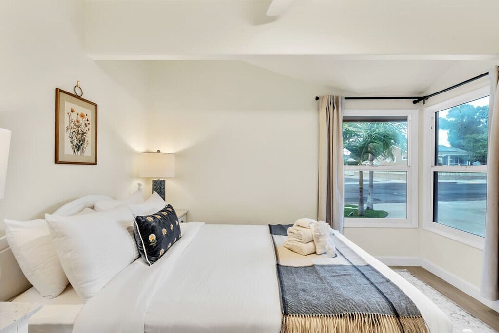 Feel at home in this modern, updated 3-bedroom home in a prime San Diego location. This cozy, open-layout home sleeps up to 6 guests. This home features a fully equipped and stocked kitchen with nice appliances, including a dishwasher and coffee maker. The living room features a modern two-piece couch and an oversized smart TV. The adjacent dining area comfortably seats six. Other amenities include a private entrance, self check-in with keypad, patio furniture, an outdoor dining area, central AC, and an in-unit washer and dryer. Enjoy the large backyard and spa. Dedicated parking is available. Located 10 minutes from San Diego State University (SDSU), 15 minutes from La Mesa Village and Point Loma/Liberty Station, and 20 minutes from Ocean Beach and Mission Valley/Fashion Valley Mall. Not-to-miss local attractions include Point Loma Native Plant Garden, Kellogg Beach, Selva Coffee House @ Terra Bella Nursery, Alvarado Canyon/Mission Trails Park, Trolley Creek Trail, and Alvarado Creek Trail. The total number of guests must not exceed what is listed on the reservation, including children and infants. You may have up to 3 additional daytime guests, but they must leave by 10:00 PM. Any overnight guests not listed on the reservation or anyone staying past 10:00 PM will incur a $100 per person, per night fee and may result in cancellation of your stay. The backyard is open between 8:00 AM and 10:00 PM, and quiet hours are from 10:00 PM to 8:00 AM. Smoking of any kind, including vaping and cannabis, is strictly prohibited anywhere inside or outside the home, and violations will result in a minimum $600 fee. Parties, events, or large gatherings are not permitted. A $150 cleaning fee may apply if the home is left excessively dirty. Late check-outs without prior approval will result in additional charges. Pets are not allowed, and unapproved pets will result in fines and additional fees. Registration Number: STR-12728L [SI]