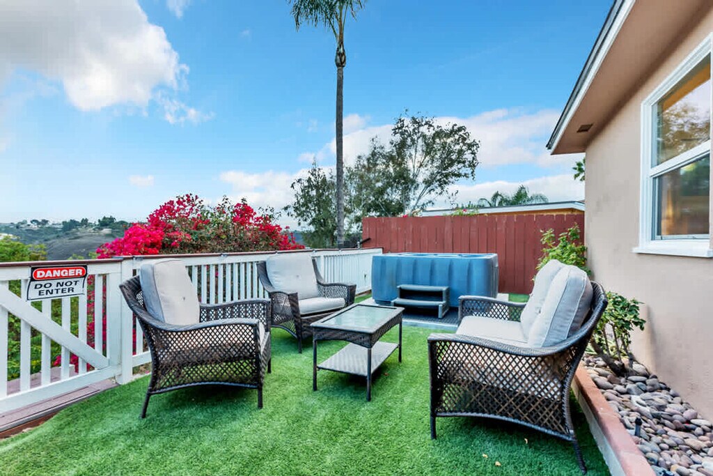 The advertised rate of $8,407/month is the lowest available price, based on a 1 month(s) stay with a move-in date of April 26, 2026. Rates vary depending on the duration of stay, season, and other parameters. For exact pricing and additional pricing components, please visit our website and enter your desired move-in and move-out dates. The rate is applicable when billed upfront; it can be higher if billed in multiple payments. Feel at home in this finely decorated, newly remodeled 3-bedroom home in a prime San Diego location. This open-layout home features a fancy dining room setting, a large backyard with seating and spa, high-speed internet, dedicated parking, an in-unit washer/dryer, and strong central a/c. The cozy living room features a modern two-piece couch and an oversized smart TV, with plenty of natural light. The adjacent dining area comfortably seats six. The family-style kitchen is fully equipped with nice appliances, including a dishwasher and coffee maker. Enjoy the private entrance, self check-in with keypad, patio furniture, and outdoor dining area. This home is located 10 minutes from San Diego State University (SDSU), 15 minutes from La Mesa Village, 15 minutes from Point Loma / Liberty Station, 20 minutes from Ocean Beach, and 20 minutes from Mission Valley / Fashion Valley Mall. Not-to-miss local attractions include Point Loma Native Plant Garden, Kellogg Beach, Selva Coffee House @ Terra Bella Nursery, and Alvarado Canyon / Mission Trails Park. Community parks and walks include Trolley Creek Trail / Alvarado Creek Trail. The backyard is open between 8:00 AM and 10:00 PM, and quiet hours are from 10:00 PM to 8:00 AM. Smoking of any kind, including vaping and cannabis, is strictly prohibited anywhere inside or outside the home, and violations will result in a minimum $600 fee. Parties, events, or large gatherings are not permitted. Any overnight guests not listed on the reservation or anyone staying past 10:00 PM will incur a $100 per person, per night fee and may result in cancellation of your stay. A $150 cleaning fee may apply if the home is left excessively dirty. Pets are not allowed, and unapproved pets will result in fines and additional fees. There is a minimum age requirement of 25 years old for all primary renters. Check-in is at 4:00 PM and check-out is by 10:00 AM. Late check-outs without prior approval will result in additional charges. Registration Number: STR-12728L [SI]