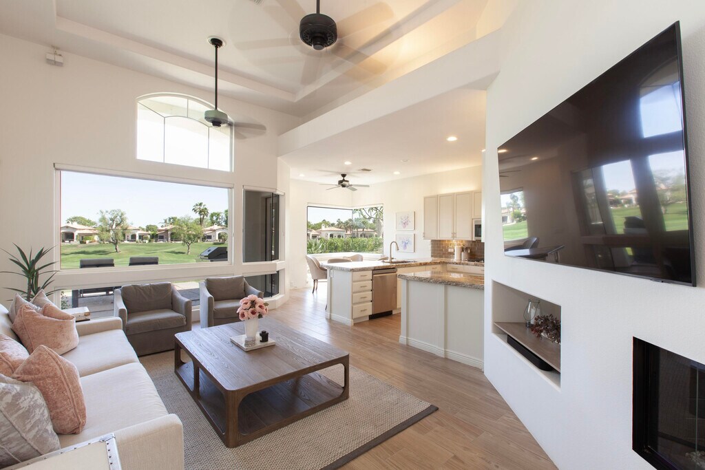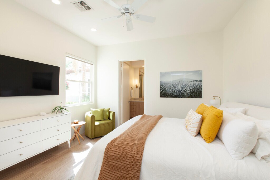 Beautifully updated Terraza II featuring 2 spacious ensuite bedrooms plus a powder room in the main house,along with a private 1-bedroom casita. The casita includes an attached golf cart garage,and a golf cart is available for tenant use. Ideally located just steps from the community pool,this home offers both comfort and convenience in a desirable setting. MLS # 219146642