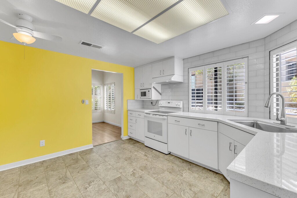 Move-In Ready Palm Desert Gem with Designer Upgrades! Step inside this stunning Palm Desert home,beautifully updated to blend modern style with timeless desert charm. Perfectly located in the desirable neighborhood of Sommerset,this 3-bedroom (third bedroom currently a den),2-bath property showcases an impeccably renovated kitchen featuring quartz countertops,custom cabinetry,newer appliances,and a chic tile backsplashideal for cooking,entertaining,or enjoying your morning coffee. The open-concept design creates a seamless flow through the bright living and dining areas,filled with natural light and perfect for gatherings. Recent upgrades include a newer HVAC and furnace (2020),ensuring comfort and efficiency,Wood flooring,and tile in bathrooms. Outside,enjoy your own private patio oasisperfect for al fresco dining,relaxing evenings under the stars,or entertaining guests. This home offers the best of Palm Desert living,whether as a full-time residence,seasonal retreat,or investment property. Community amenities elevate the lifestyle with landscaping,trash service,sport courts,sparkling pool,and spa all included in the HOA. When it comes to location,you'll love being just minutes from El Paseo's upscale restaurants,boutique shops,art galleries,and world-class golf courses. Whether you're in the mood for fine dining,casual bites,or a day on the fairways,everything you need is right at your doorstep in the heart of Palm Desert.