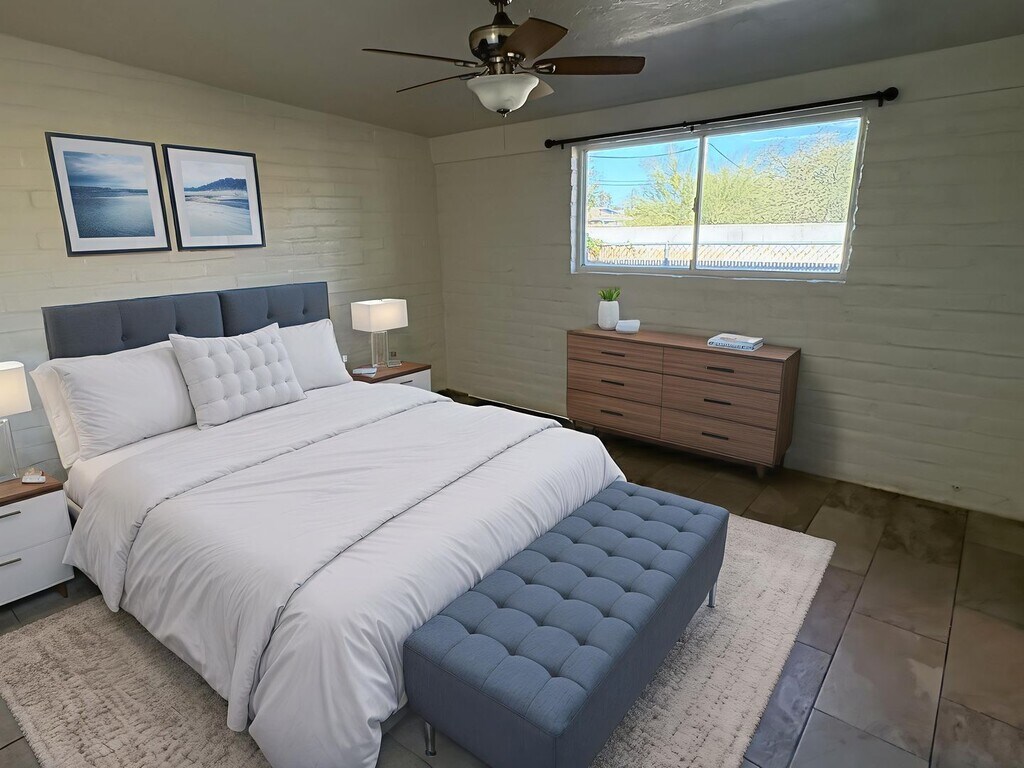 Welcome to this centrally located gem in Tucson, AZ, nestled on a cul-de-sac for added privacy. This home boasts four bedrooms and two bathrooms, all tile flooring, perfect for comfortable living. The covered patio and huge enclosed yard offer ample outdoor space for relaxation or entertaining. The home also features off-street parking and is conveniently located near public transportation, making commuting a breeze. The new energy-efficient HVAC system ensures year-round comfort while helping you save on utility costs. A unique feature of this home is the heated/cooled bonus room and workshop area, not included in the square footage, offering extra space for hobbies or storage. The wood-burning stove adds a cozy touch to the living area. Plus, water, sewer, and trash costs are included in the rent, adding to the home's affordability. Experience the convenience and comfort of living in this well-appointed home in a great central location. Washer/dryer hook ups. Pet friendly.