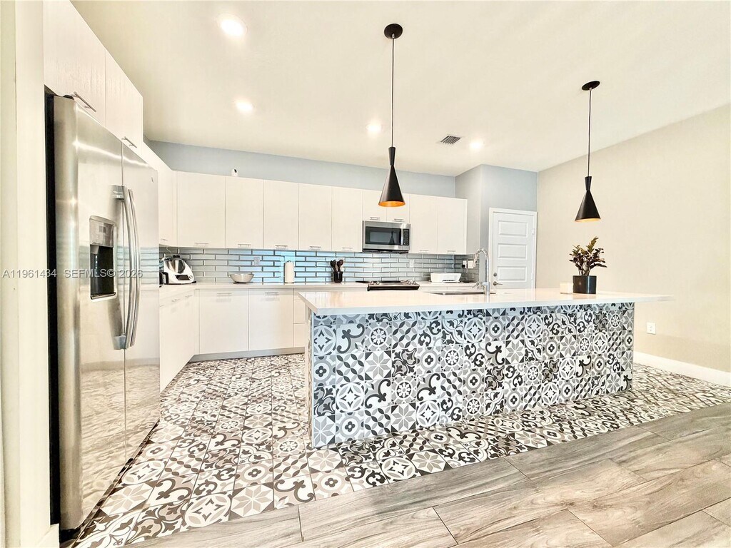 Property for Rent - Downtown Doral. Beautiful three-story residence offering 2,026 sqft of living space with 3 bedrooms, 2 full bathrooms, and 2 half bathrooms. Features include a two-car garage, impact windows, and double terrace with outdoor kitchen, ideal for entertaining. Spacious and modern family room on the third floor. No carpet throughout the home; NEW laminated flooring in bedrooms and stairs. Residents enjoy a modern and spacious clubhouse with full amenities for family entertainment and recreation. Prime location in the heart of Downtown Doral, within walking distance to restaurants, shops, and more. Easy to show, please make your appointment 24 Hrs in advance. MLS # A11961434