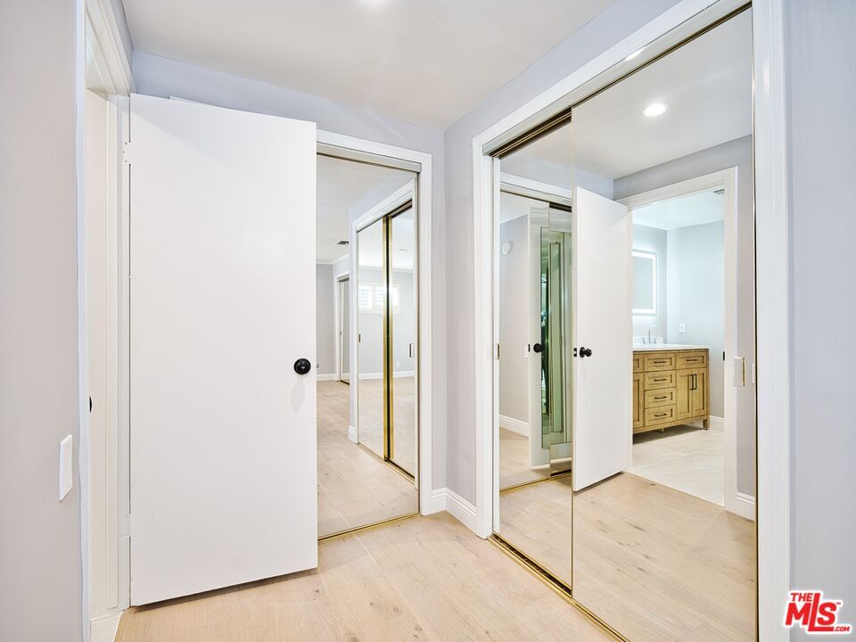 Presenting this beautifully updated single-story California Ranch pool home set above a tree-lined street below towering palms in a desirable neighborhood south of the boulevard. Manicured landscaping and and lush foliage contribute to its charming curb appeal. Enter to find a great room with plantation shutters, sliding doors to the outside, and wide-plank white oak floors. The kitchen is bright and spacious, with ample cabinetry, soothing tile backsplash, and eat-in area. The primary bedroom has floor-to-ceiling windows, dual closets, and remodeled bath with dual-sink vanity, smart mirror, and rainwater shower with ledge and niche. Secondary bedrooms and bathrooms are also finished with on-trend materials, ready for today's modern lifestyle. The laundry room has side-by-side washer/dryer and storage, located off of the kitchen, and there is a two-car garage. In the backyard, swim in the sparkling pool, dine al-fresco under the shaded patio, or lounge poolside. Enjoy nearby hiking trails, parks, and scenic overlooks, with Malibu beaches just a short drive via Topanga Canyon. This move-in-ready home is also close to Taft High School, top-rated K-5 Serrania Avenue Charter, and Pierce College as well as the many eateries and boutiques along Ventura Boulevard, all just moments to Westfield Topanga and Village shopping centers and the 101 Freeway. MLS ID 26796007