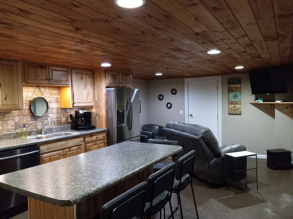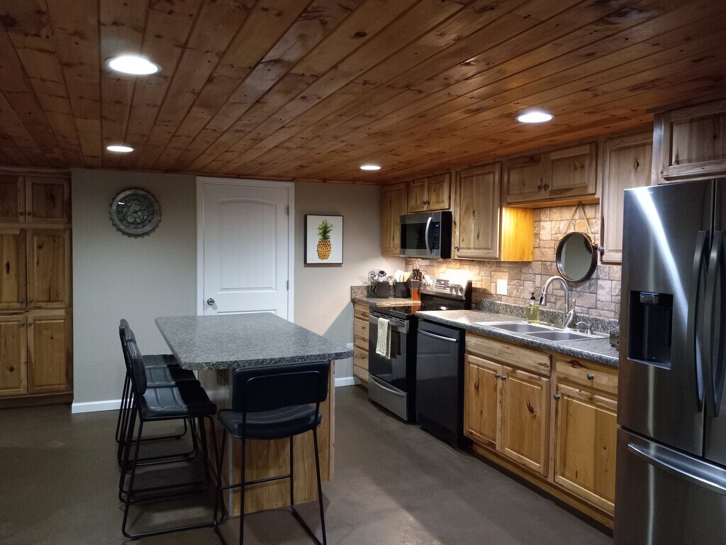 Warm, cabin feel. Super clean and fully furnished with everything you need. Perfect for business travelers or those relocating to the area. This deep cleaned mid term furnished rental is like an Airbnb with longer term options. Rates based on lease term and number of guests. See below. Pets considered with pet interview and additional fees. ALL UTILITIES INCLUDED!: Water, Electric, and excellent High speed WiFi. Plus, 4 smart TVs have WiFi/Roku streaming stick with Netflix, Hulu, Disney Plus and Prime included! Strong cellular signal at this location. 1,100sf 3BR/1BA Beautifully remodeled walk out daylight basement with your own private paved entrance in back, parking for 3 vehicles and completely separate living space from the upstairs Main Level unit. Large laundry room in your space with extra room for storage and work space, includes new full size washer and dryer. Mud room entry with sitting area. ALL hard flooring throughout! No carpet! 3 BEDROOMS. 2 Queen bedrooms and 1 bedroom with 1 or 2 Twin beds, based on need. Full bath is central to all bedrooms and has a tub/shower combo with rainfall shower head and wand. Deep sink located just outside bathroom for additional space to get ready. Completely furnished with luxury linens, bedding, pillow top and memory foam mattresses. Please enjoy the big backyard, fire pit, hammock, bench swing and gas barbecue grill, stocked with propane and fire wood. Evenings are magical under the string lights. Safe, walkable neighborhood. Centrally located between Johnson City, Kingsport, Bristol and Elizabethton. Only 20 minutes from Tri-Cities Regional airport in Blountville. *RENTAL RATES AND LEASE TERMS: Short and long term lease options. Base rate covers up to two people. (with room for 6 for additional fee). Call to discuss. $2,800/mo with 6 month lease $3,200/mo with 3 month lease $3,000 Security Deposit Pets considered with pet interview, $100/mo pet rent per pet and one time $300 pet fee. The Main Level 5br/2ba unit of this single family home may also be available to rent. Call to discuss.